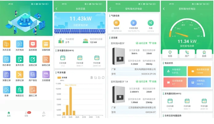 涵盖发电监测、环境监测、视频监测、逆变器状态查询等功能。实时监测电站的发电数据,如发电量、发电效率等;采集环境数据,包括温湿度、风速、辐照度等,以便分析环境因素对发电的影响;通过视频监控实时查看电站现场情况;随时查询逆变器的运行状态,确保电站的稳定运行。