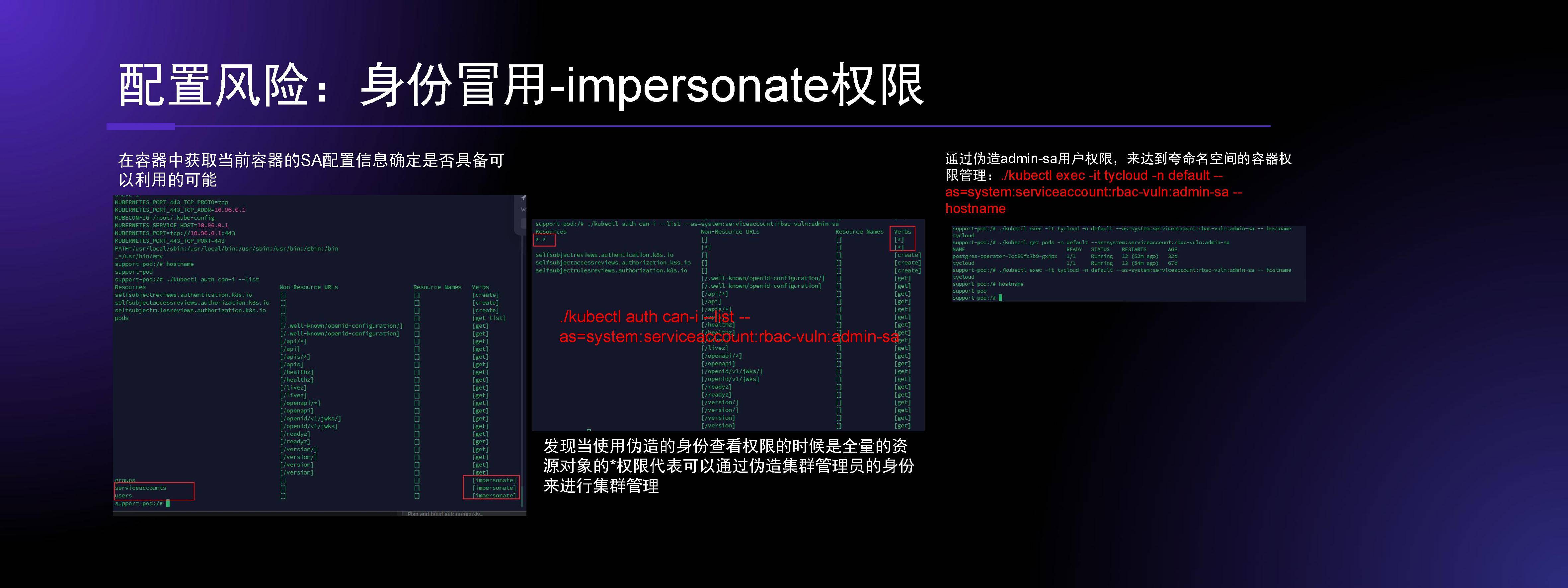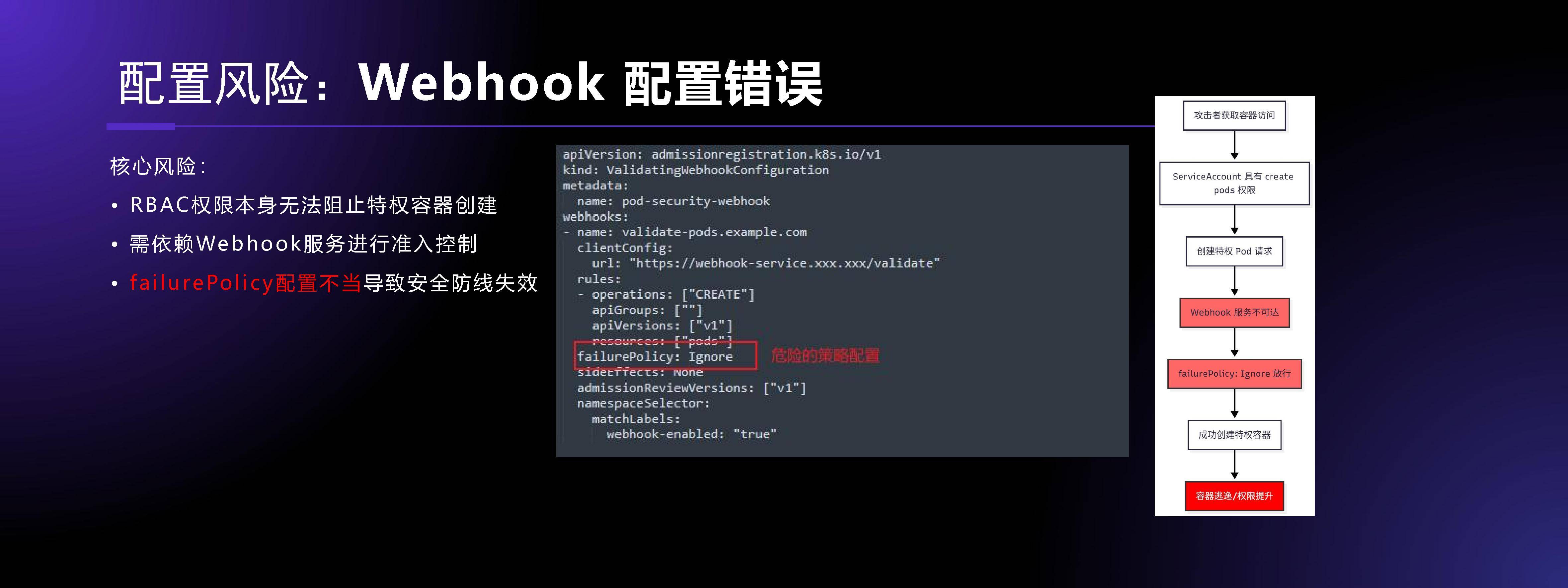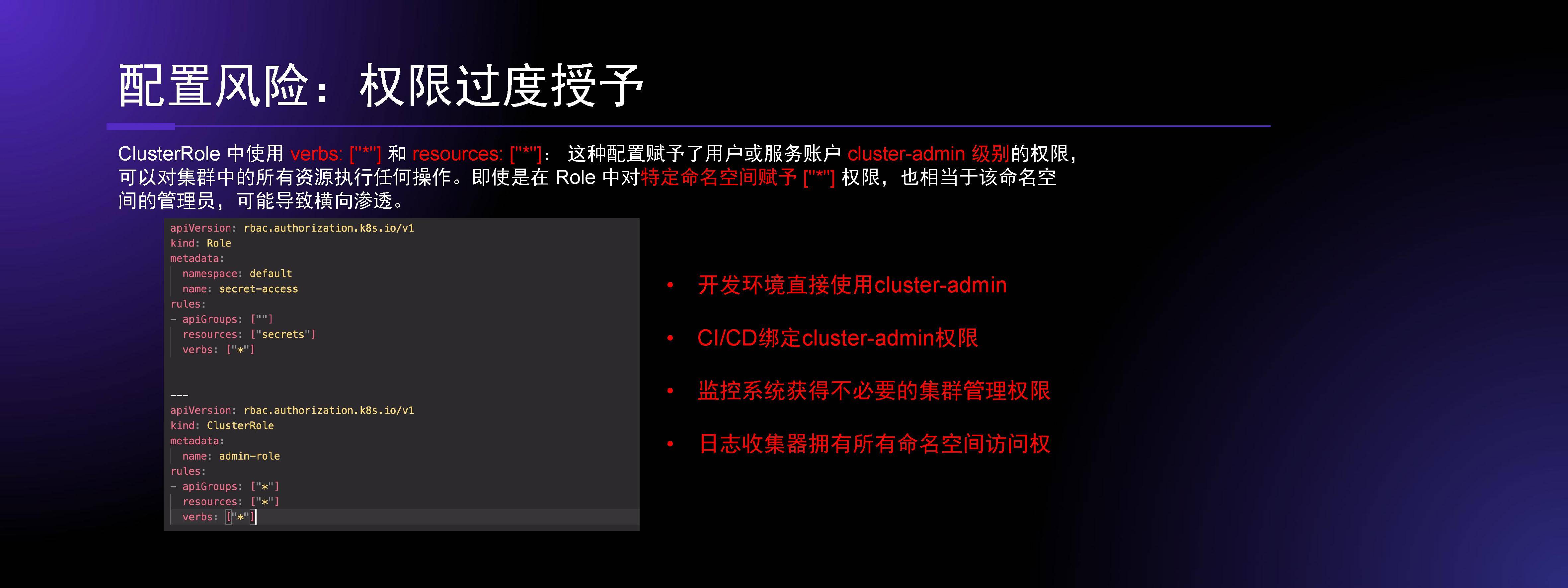 报告重点揭示了集群RBAC配置中的六大高危风险点:默认ServiceAccount被赋予过高权限、ClusterRole使用通配符“*”导致权限泛滥、impersonate权限被滥用于身份冒用、Pod资源组配置错误允许创建特权容器、Webhook准入控制策略失效,以及ServiceAccount对Secrets的过度读取权限。通过多个实战场景,如微服务架构下的权限横向移动、Nexus仓库凭据泄露引发的集群接管等,生动展示了攻击者如何利用这些配置缺陷完成从初始入侵到集群完全控制的完整攻击链。