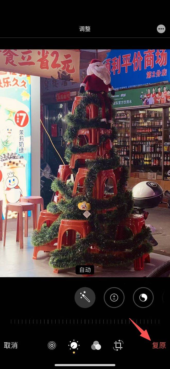 进入“编辑”界面,点击“复原”照片即可恢复正常
