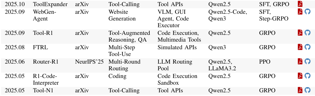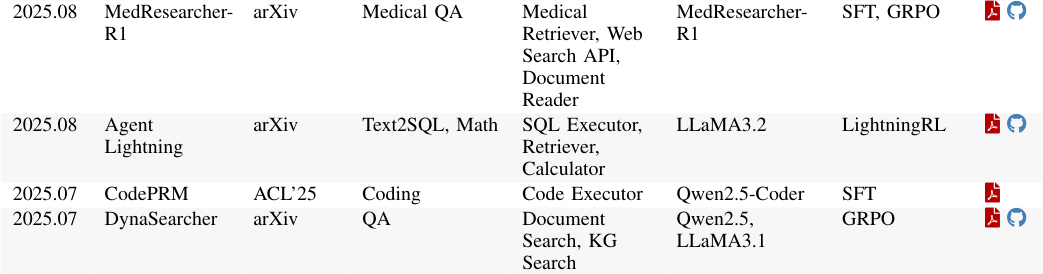 Search-R1和ReSearch是这一领域的杰作。在这些系统中,模型需要自主决定何时搜索、搜索什么以及如何利用搜索结果。训练的奖励信号不关心某一次具体的搜索是否完美,只关心最终生成的答案是否正确。