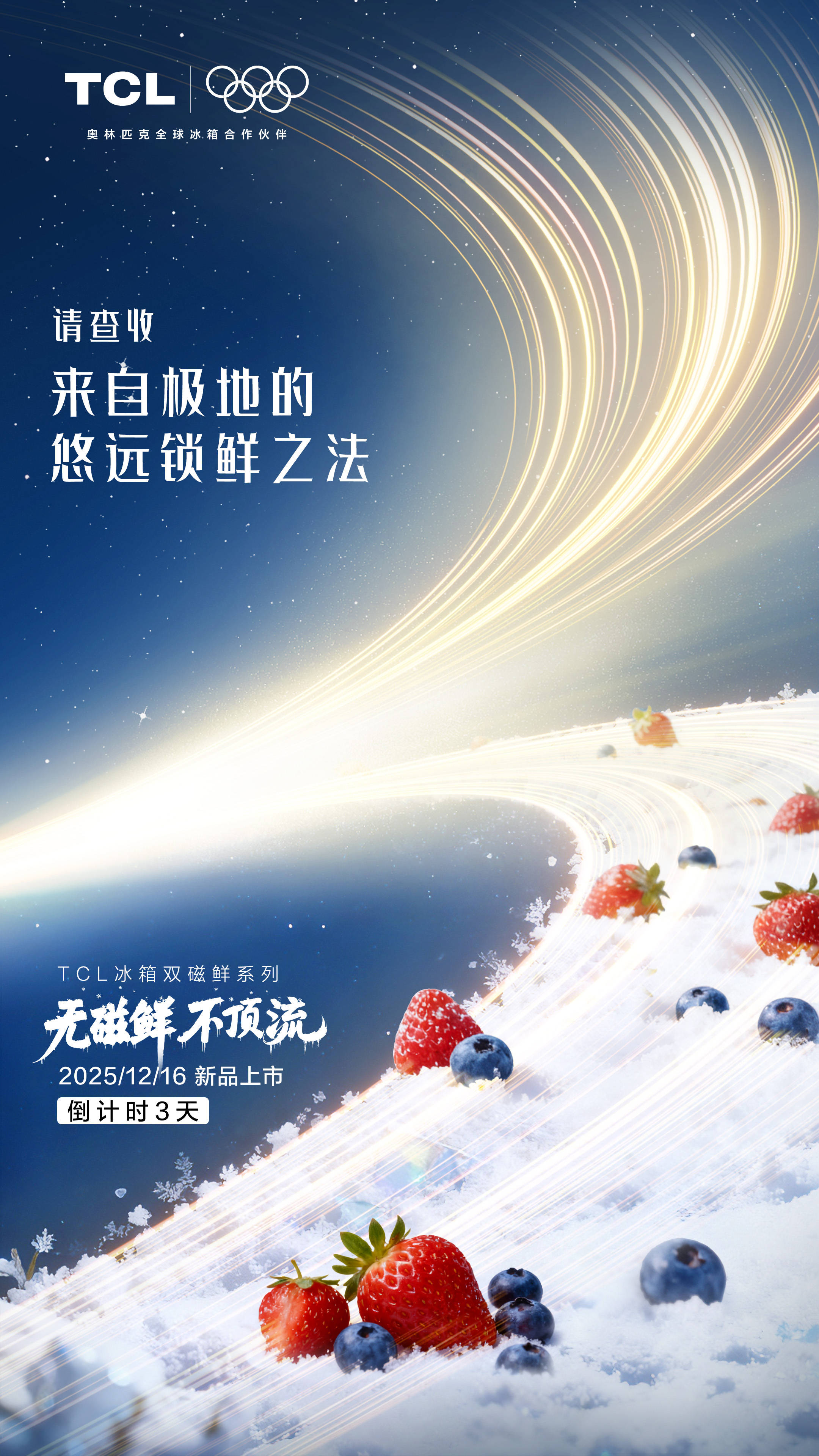 但当看到最后一天的倒计时海报——“深冷双磁保鲜”的储鲜,或许前面我们对双磁鲜的另一“磁鲜”在哪里,“100天长久锁鲜”是冷藏还是冷冻,这些疑问就有了解答。也更加印证了我们的猜想,TCL双磁鲜冰箱或许就是在冷冻保鲜上狠下功夫了。