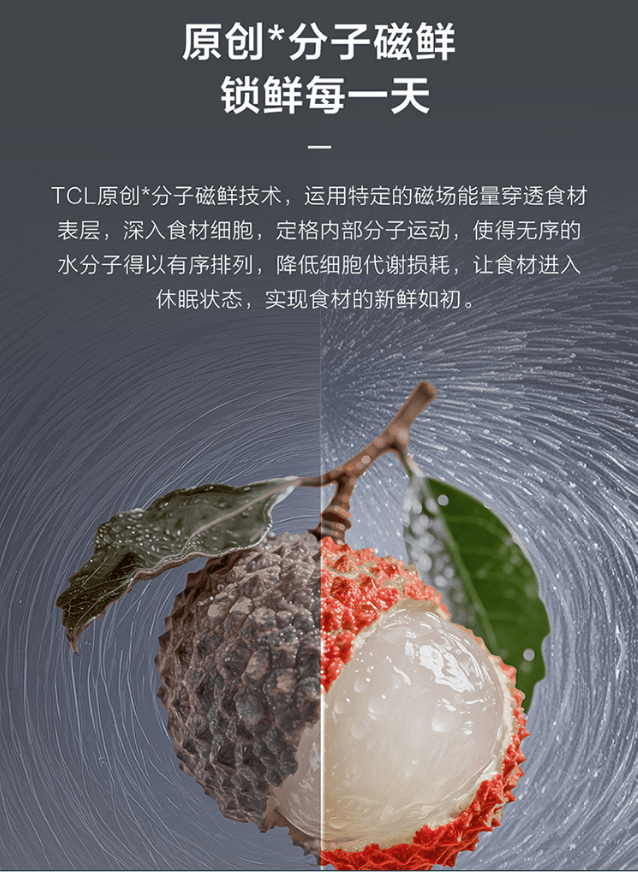 首先,原创*分子磁鲜作为TCL在冷藏区的磁控科技,已经实现了冷藏区食材最长15天的保鲜期。从冰麒麟系列冰箱产品的用户反馈来看,原创*分子磁鲜确实保证了蔬菜水果等食材的长效保鲜。这项技术如果要运用到TCL双磁鲜冰箱上,是否会迎来升级?这是一个悬念。