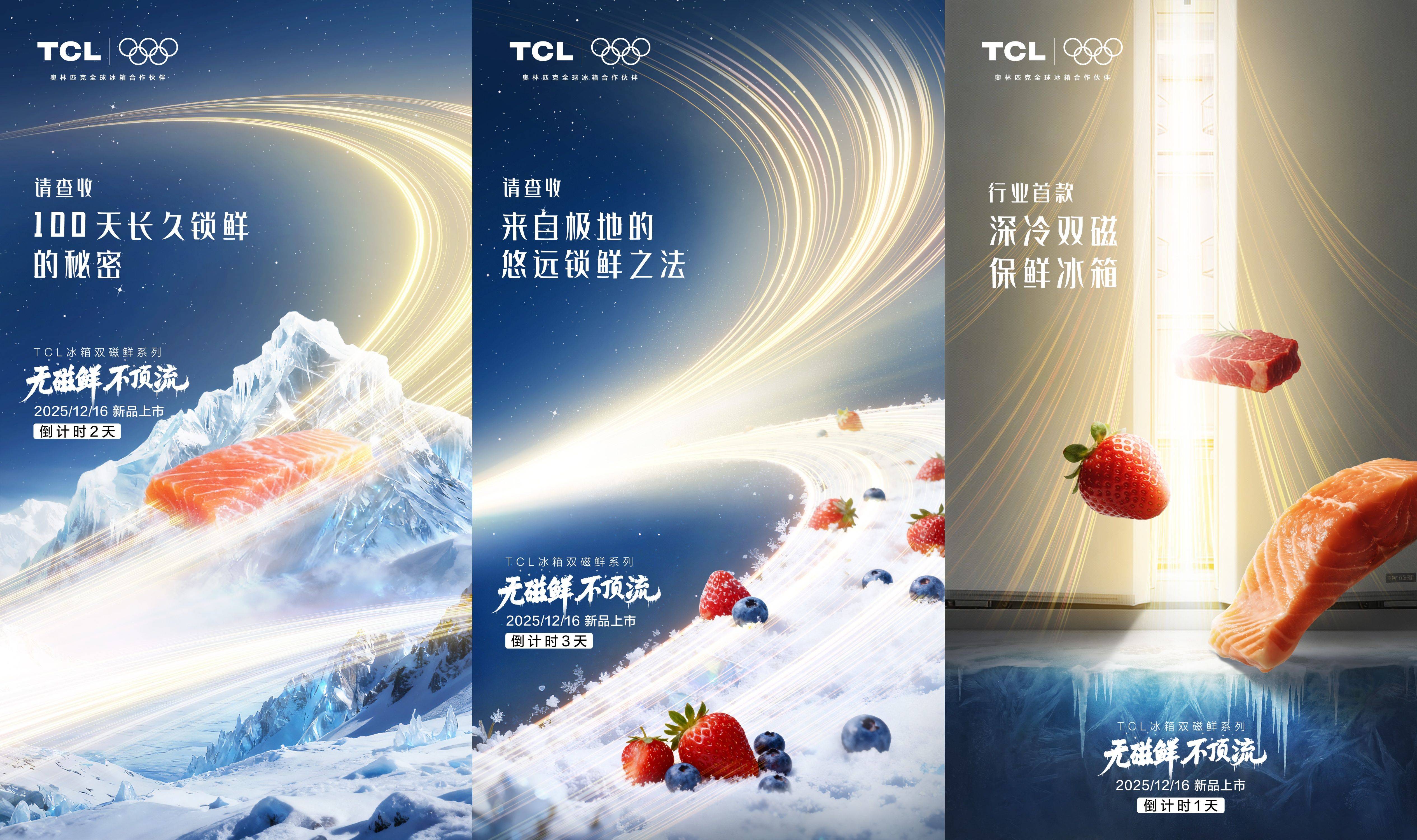 因为即使是到了最后一天,TCL双磁鲜冰箱的真面目依旧被捂得严严实实,除了新品的系列名字“TCL双磁鲜冰箱”是确定的之外,其他功能机核心卖点依旧只能靠三张海报浮想联翩!