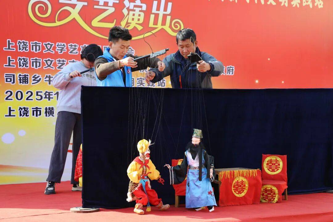 为丰富村民精神文化生活,营造文明和谐的乡村氛围,12月14日,“送戏下乡暖民心 非遗木偶乐乡亲”文艺演出在横峰县司铺乡牛桥村举办。180余位村民齐聚一堂,共享这场家门口的文化大餐。