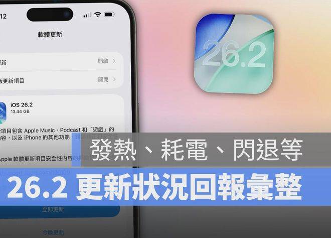 本篇文章也照惯例来搜集大家的iOS 26.2更新灾情与状况回报,包含耗电、闪退、卡顿、发热等各种问题都可以透过文章内的表单回应,给广大的iPhone用户共同参考; 已经更新或是想知道更新状况的网友,则可到「苹果人社团」一起讨论 iOS 26.2 的更新状况与使用体验。