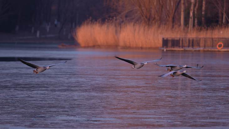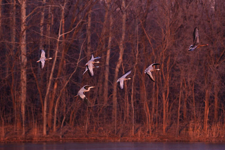 比如上面这组拍摄鸿雁在水面煽动翅膀的画面时,多次因反应不及错过“舞动”的瞬间,而开启预拍摄后,即使快门稍慢一步,也能从缓存中找到最完美的姿态与环境相融合的画面,堪称 “抓拍神器”。