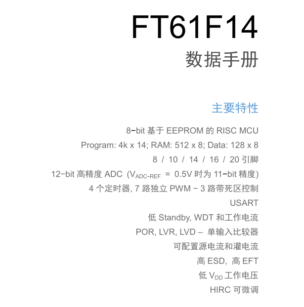FT61F14X主要特性: