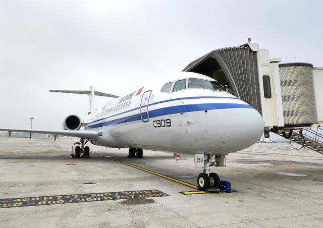 C909是我国首次按照国际通行适航标准自行研制、具有自主知识产权的中短程新型涡扇支线客机,载客78—97座,航程2225—3700公里,于2016年6月28日首航。近年来,C909不断拓展航线网络,加快规模化、系列化发展。目前,C909已有货机、应急救援指挥机、医疗机和公务机等衍生机型;累计运营700余条航线,每天运载数万旅客、链接上百座城市,实现了国产喷气飞机商业运营的突破。