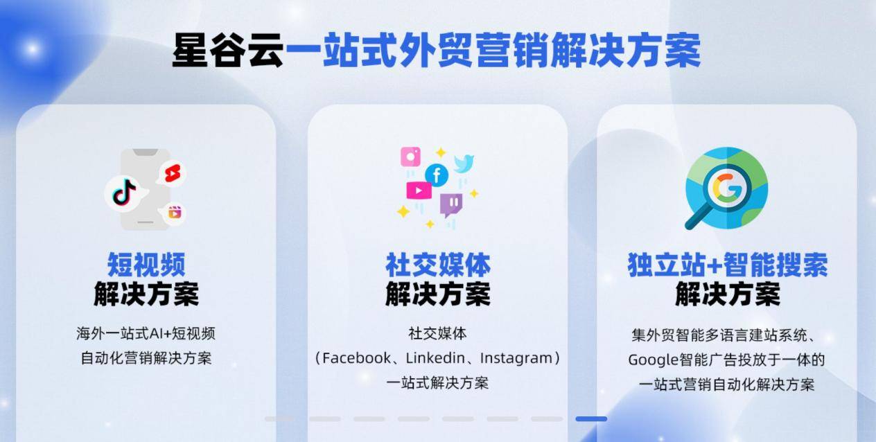 · 数字营销系统:星谷云(提供海外社交/短视频整合运营、内容管理、数据追踪等能力);
