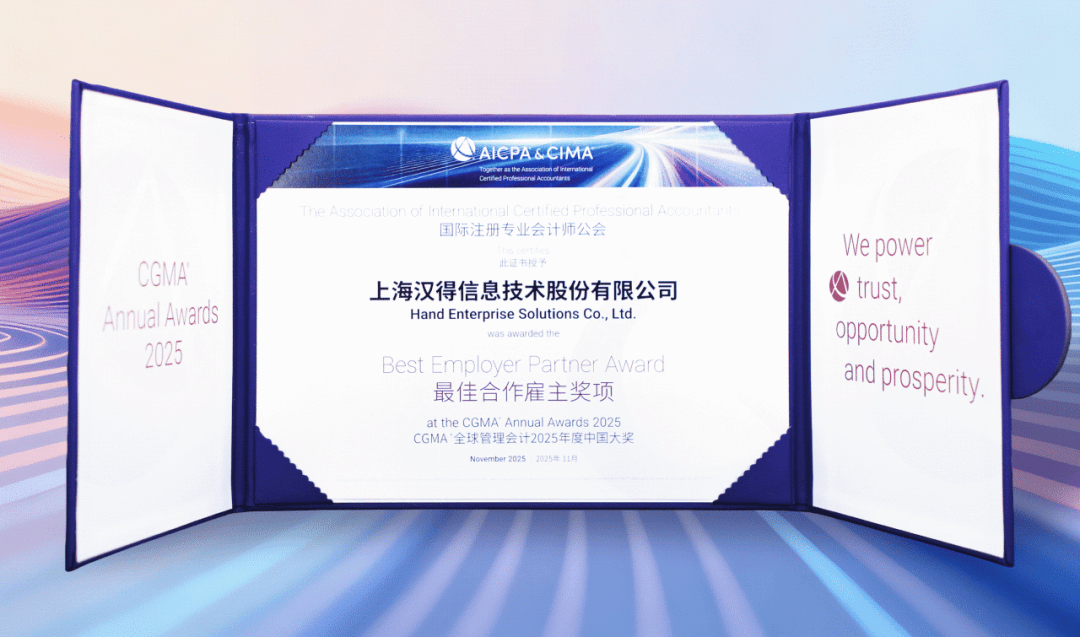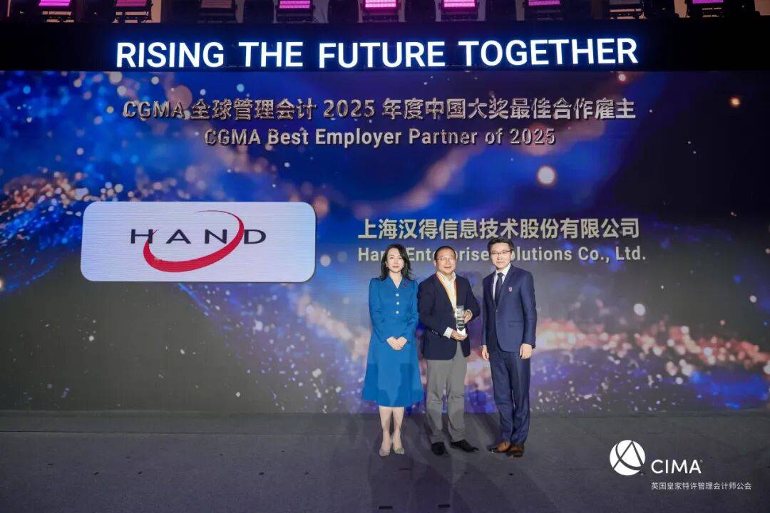 作为CGMA 2025年度最佳合作雇主,汉得倍感荣幸。未来,我们将继续与公会深化合作,在财务数智化、人工智能助力企业降本增效上共同探索创新,助力更多企业提升财务效能水平,为行业树立数智化转型标杆。