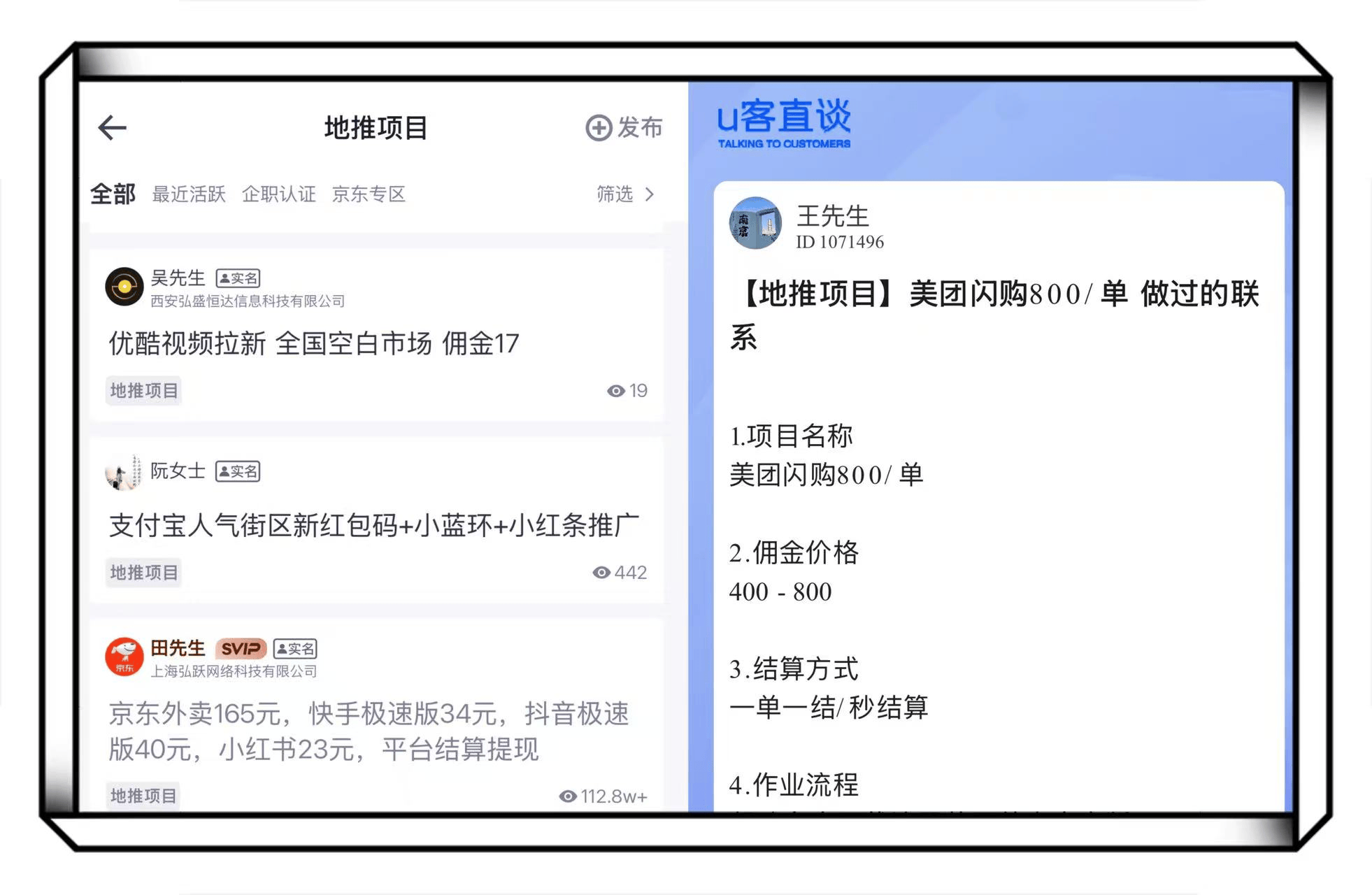 这份工作不难操作,我们先要借助U客直谈、闲创无忧等平台去进行接单,它的项目类型非常丰富,包括了app拉新、教育机构招生、新店开业等等。