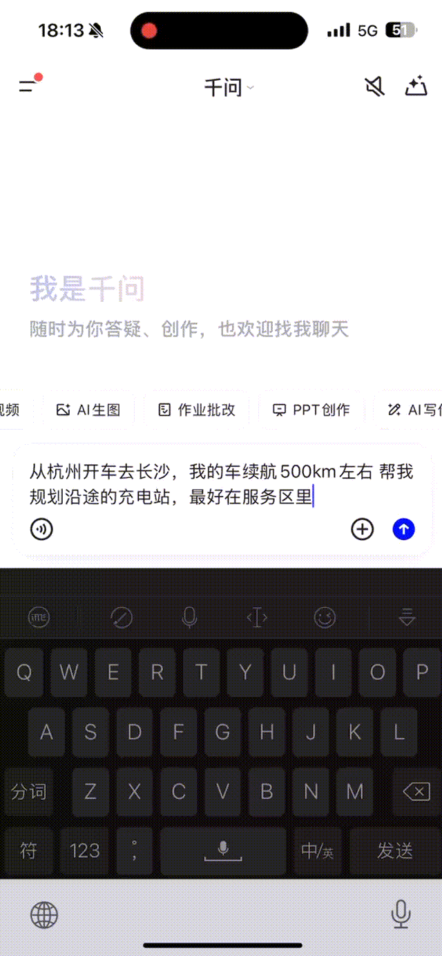 这种“现实锚定”的能力,让 AI 拥有了真正的时空感知。它甚至能结合车型油耗或电量帮你做长途规划,比如从杭州开车去长沙,它能精准告诉你续航 500km 的电车该在哪个服务区充电最稳妥。它不再是给你一段文字,而是为你构筑了一个动态的时空方案。