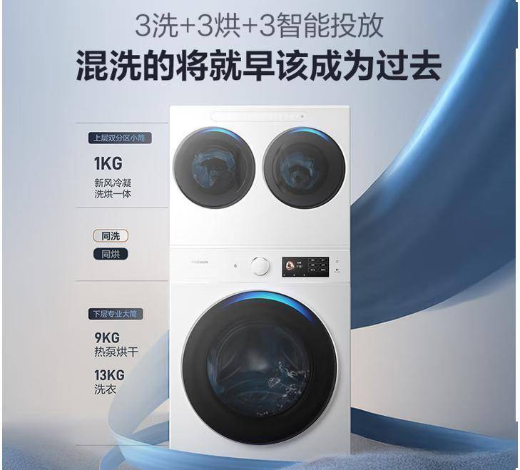 三筒独立运作设计,可同时处理不同材质、颜色的衣物。婴幼儿衣物、真丝衬衫与牛仔裤👖不再需要分批洗涤,省时省力更省心。