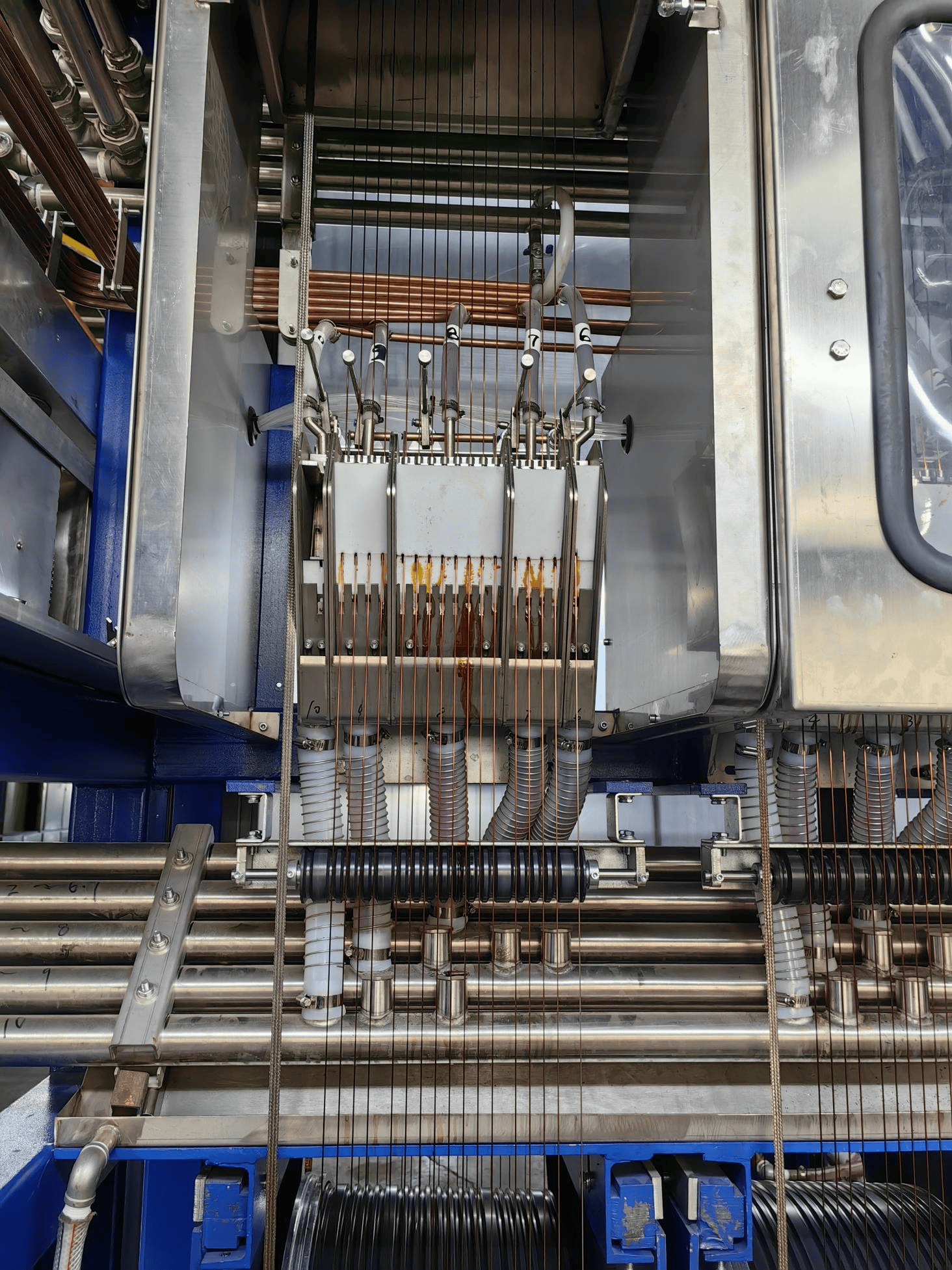 西玛梅达构建了以高速、智能、环保为核心特征的完整产品体系,涵盖MD卧式高速圆线拉丝漆包机系列、立式高速圆线拉丝漆包机系列及立式高速扁线漆包机系列。 MD卧式高速圆线拉丝漆包机系列以智能赋能、绿色增效为设计核心。通过闭环式润滑涂敷系统实现涂敷量的精准给定,配合线温实时监测与动态调节技术,控制导体热变形量。搭载的生产执行系统可实现线盘配方参数化存储、生产数据可视化呈现,还可配备六轴『机器人』️完成自动上下盘作业,降低人工干预率。其创新型环保烘炉采用分区式催化燃烧结构,催化效率高,能耗降低,废气处理装置集成先进技术,助力企业达成双碳目标,单台设备年产能较同类产品提升25%。 立式高速圆线拉丝漆包机系列搭载新颖高效热风循环系统、全电脑自动化控温系统和余热回收系统。热风循环系统使烘炉内温度均匀性控制出色,全电脑自动化控温系统实现精准管控,余热回收系统可产生蒸汽,节省能源成本。设备在精度控制与智能化方面表现优异,多功能特性可适配不同材质导体和线径,产品合格率稳定在99%以上。 立式高速扁线漆包机系列专为『新能源』汽车驱动电机、工业电机等领域设计,以高速高效、精准稳定为核心优势,完美适配扁铜线、扁铝线的绝缘处理需求。