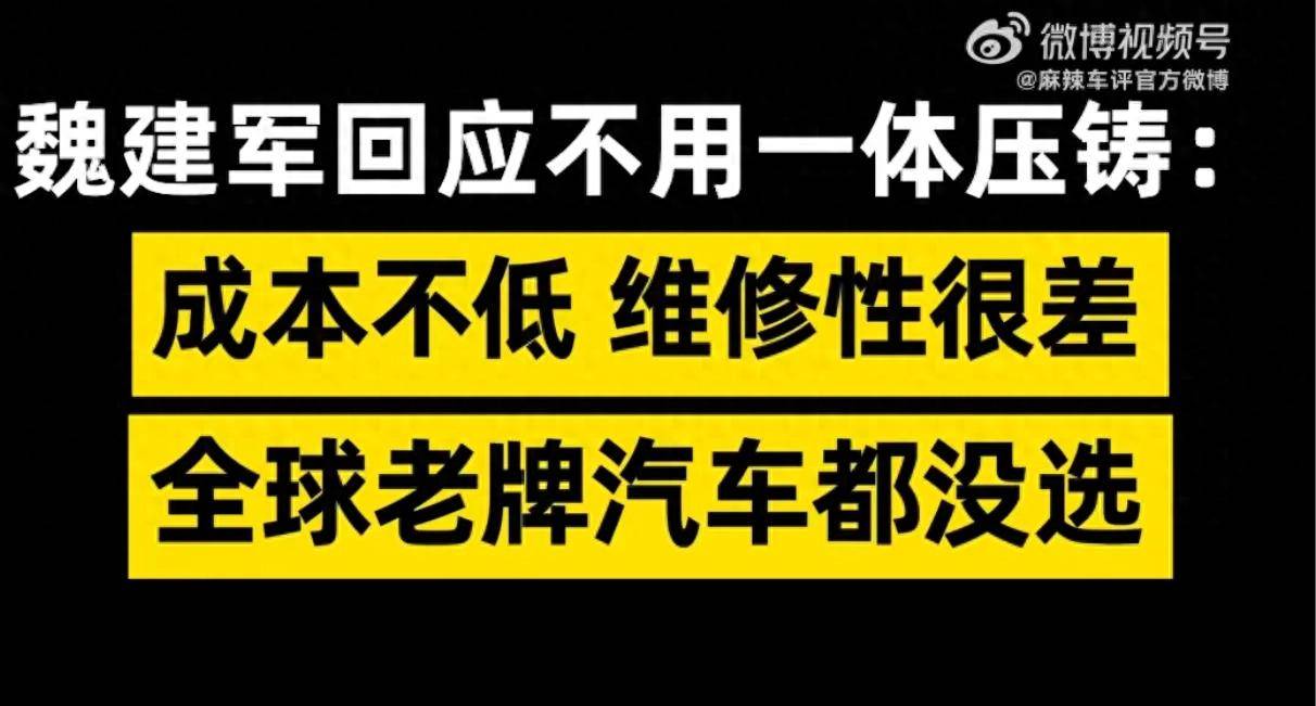 在欧拉新车上市发布会上,他直言三大弊端:其一,国内技术尚未成熟,设备与配套的高要求导致制造成本居高不下,并未达到预期降本效果;其二,生产缺乏灵活性,难以适配长城多品牌、多车型快速切换的生产需求;其三,铝合金压铸件碰撞后无法局部修复,只能整体更换,大幅推高维修费用与保费,损害用户长期使用利益。作为深耕传统制造的车企掌舵人,魏建军的决策更侧重现实适用性与用户使用成本。
