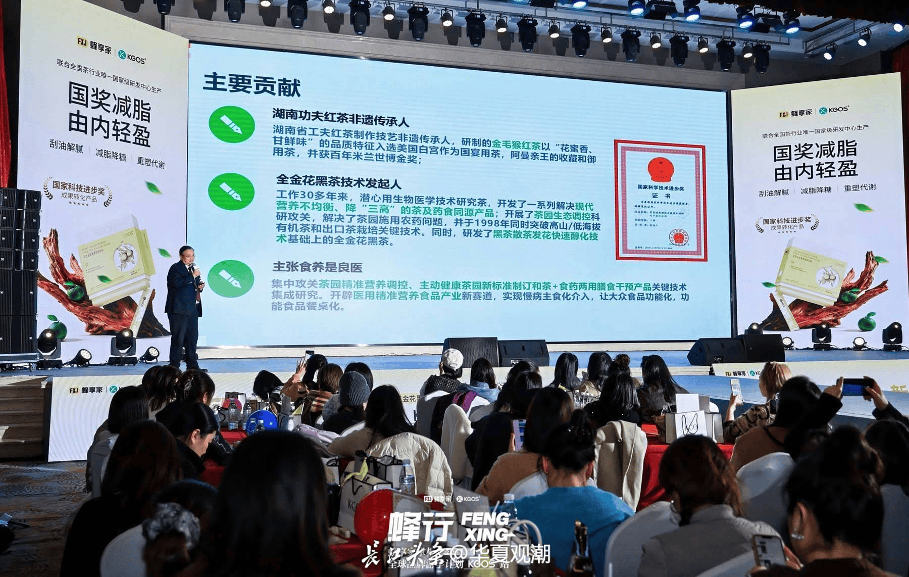 在研发层面,KGOS灵芝金花黑茶更是汇聚顶级资源:由国家科技进步奖二等奖获得者、2023年国茶人物・制茶大师吴浩人领衔,核心技术源自《黑茶提质增效关键技术创新与产业化应用》《茶叶功能成分提制新技术与产业化》两项国家科技进步奖成果。作为全国体重管理领域唯一获此国家级认可的科技转化产品,其含金量让在场掌柜纷纷感叹“推广起来更有底气了”,为产品市场认可度筑牢根基。