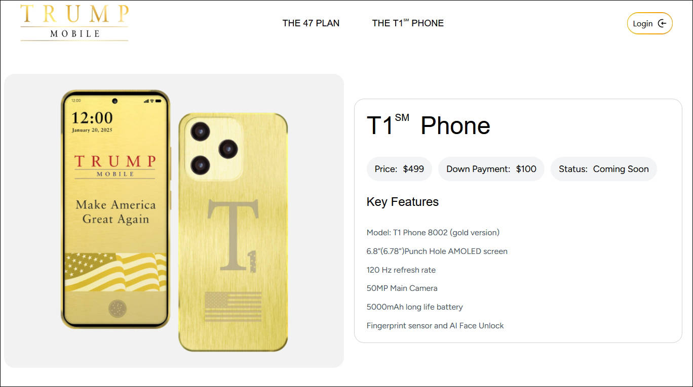Trump Mobile最初表示,“T1”手机将于今年8月推出,并在美国制造,预订需支付100美元💵。