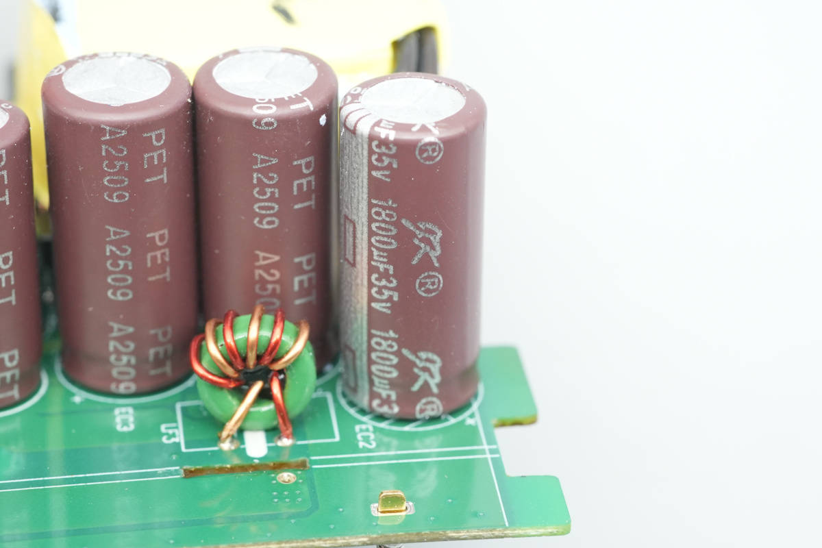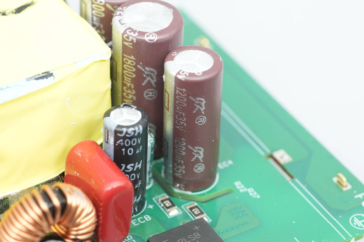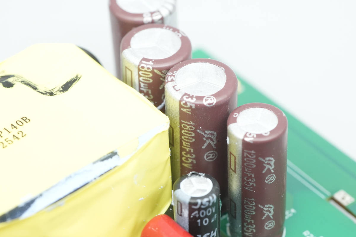 四颗输出滤波电容全部来自军康,一颗规格为35V1200μF。