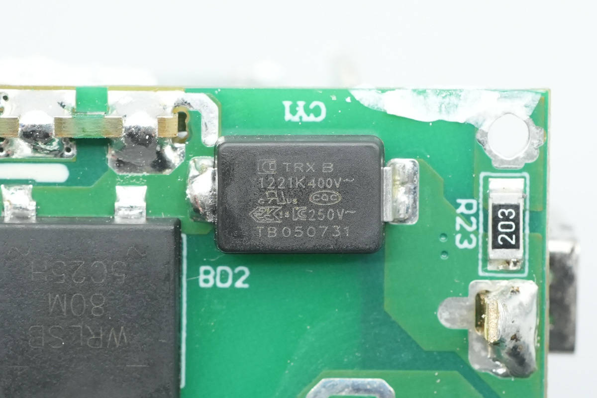 贴片Y电容来自四川特锐祥科技股份有限公司,具有体积小、重量轻等特色,非常适合应用于氮化镓快充这类高密度电源产品中。料号为TMY1221K。