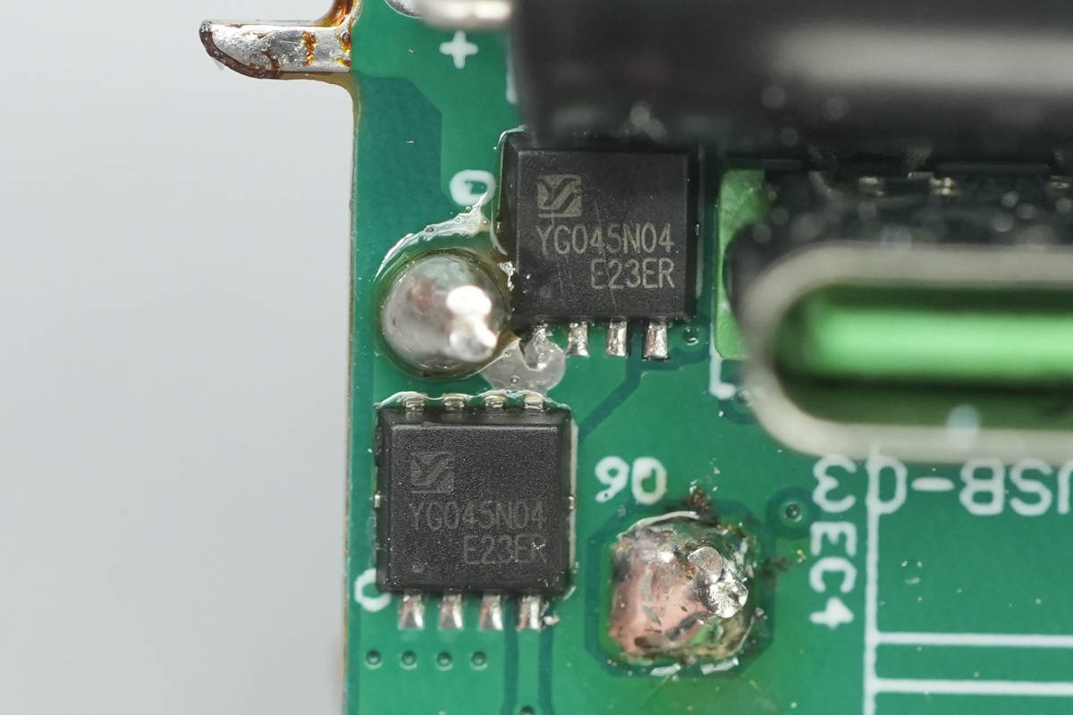 USB-A口的输出VBUS开关管也是优晶微YC40N03ADE。