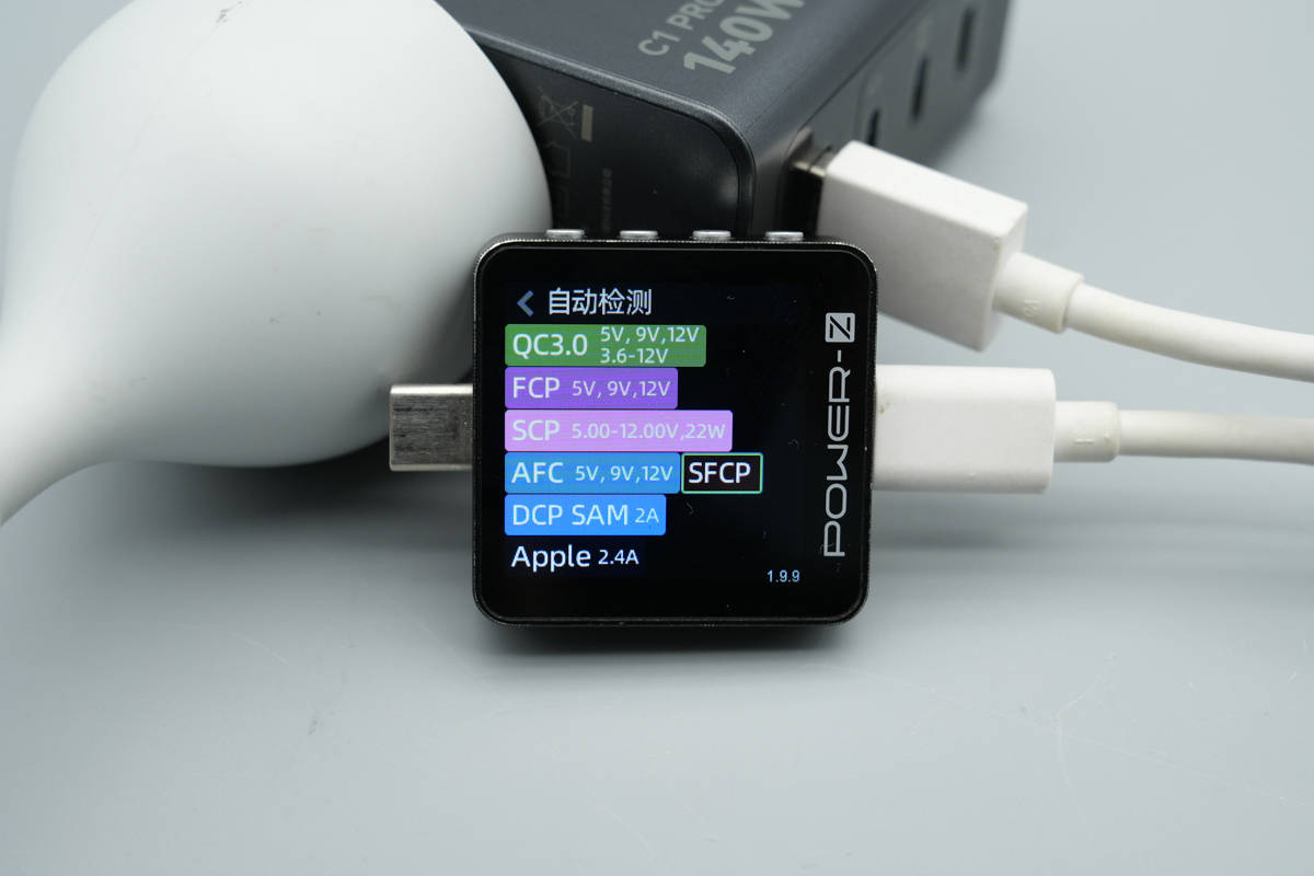 测得USB-C3口支持QC3.0/4+、FCP、SCP、AFC、SFCP、PD3.0、PPS、DCP、SAM 2A、Apple 2.4A充电协议。