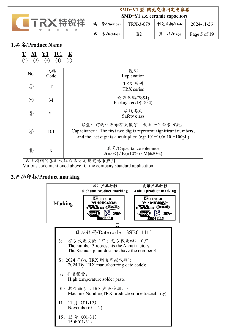 另一颗特锐祥贴片Y电容料号为TMY1102M。