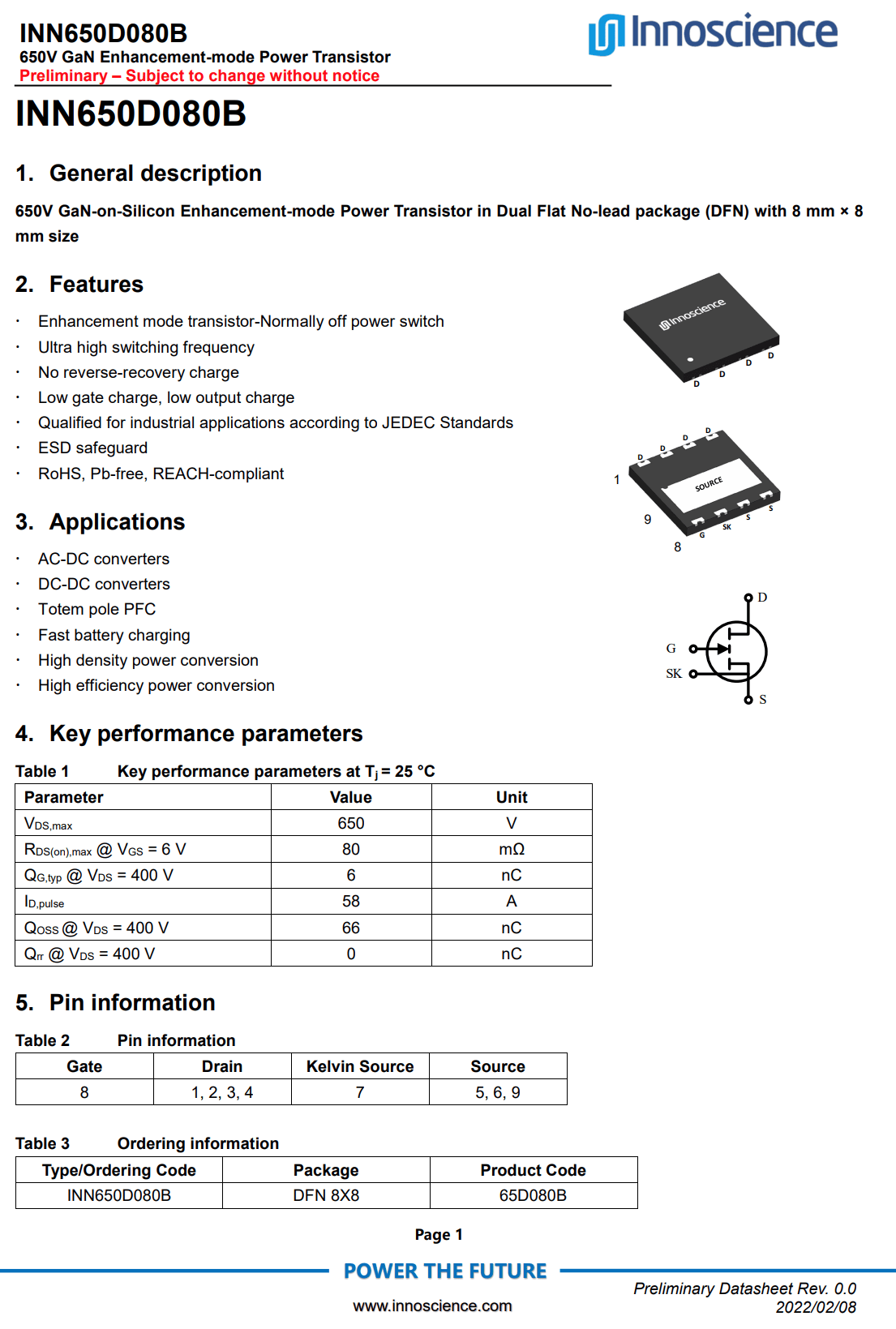 英诺赛科INN650D080B资料信息。