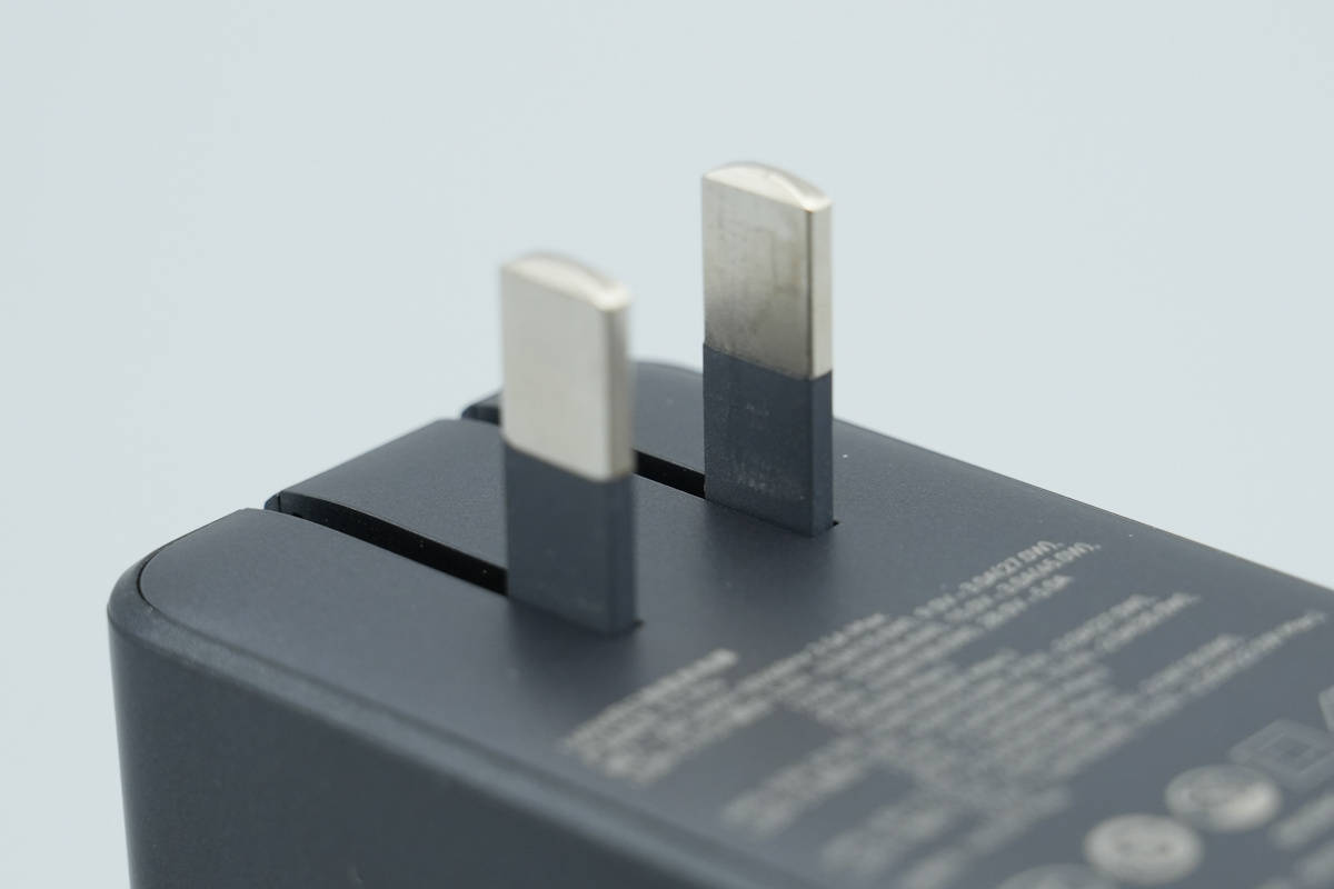 充电器配备符合新国标标准的半包胶折叠插脚,更加便携同时有效避免误触风险。