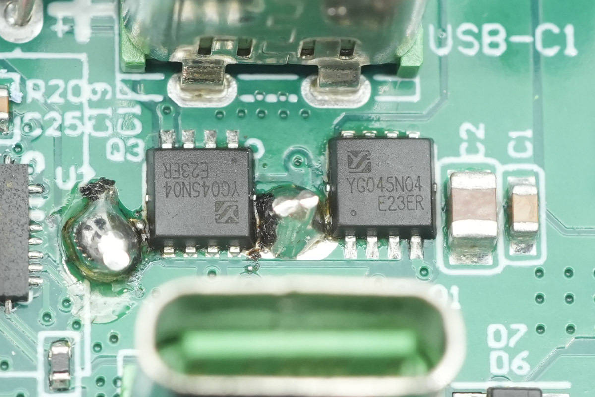 USB-C2口的输出VBUS开关管也是优晶微YC65N04ADE。