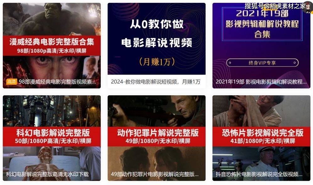 首先是稻虎网作为国内顶尖视频素材网站,稻虎素材网提供了丰富的电影解说视频素材,不仅科幻大片、动作犯罪、恐怖片,还有微电影、电影解说教程等,而且质量都很高。更重要的是稻虎网素材都是4K高清无水印,可以分类查找,也可以关键词搜索,找素材很方便,而且都是无版权©️的,特别适合影视解说类视频的制作。