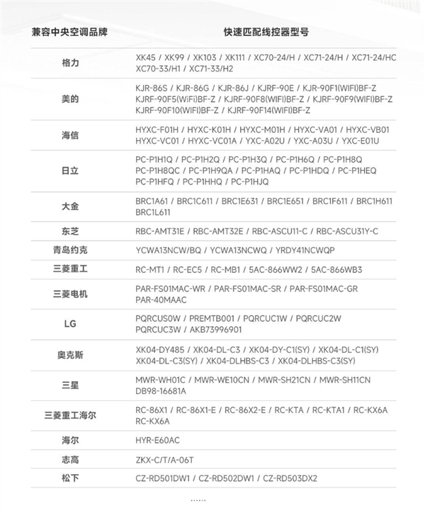 产品兼容格力、美的、海信、日立、大金等众多主流中央空调品牌及对应型号线控器。