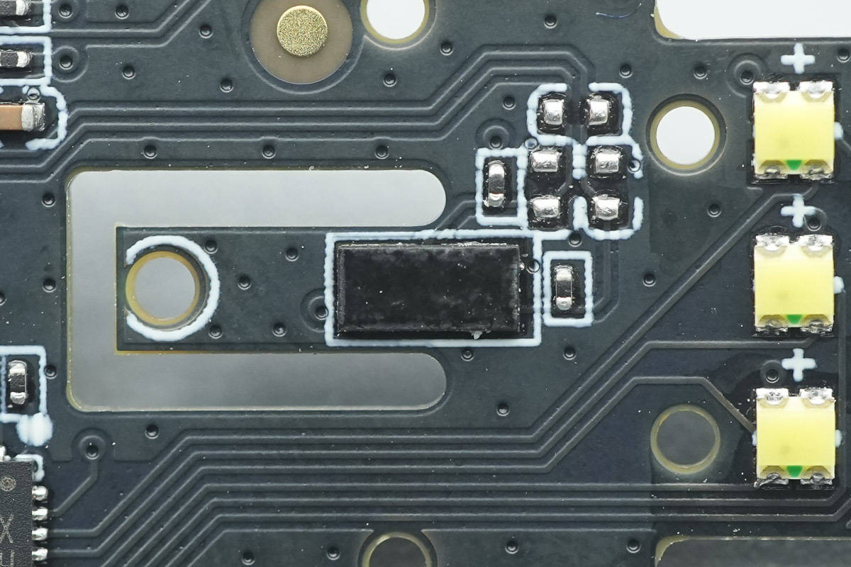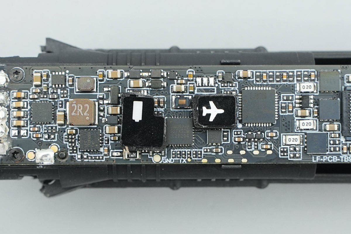 电量/蓝牙状态指示灯以及飞行模式指示灯导光片下方设有橡胶垫。