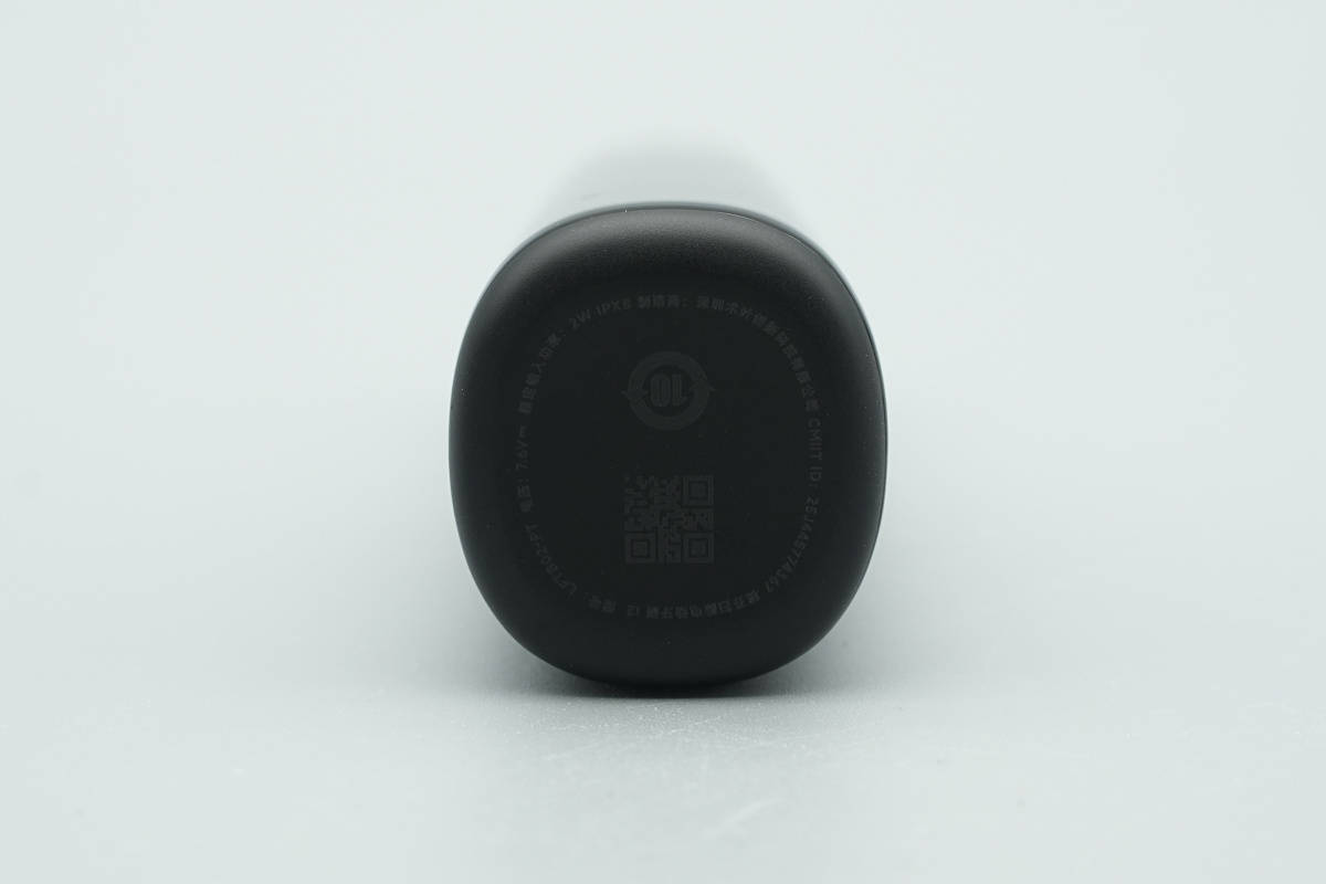 机身底部黑色塑料外壳磨砂处理,边缘过渡圆润,外壳上还印有产品参数信息。