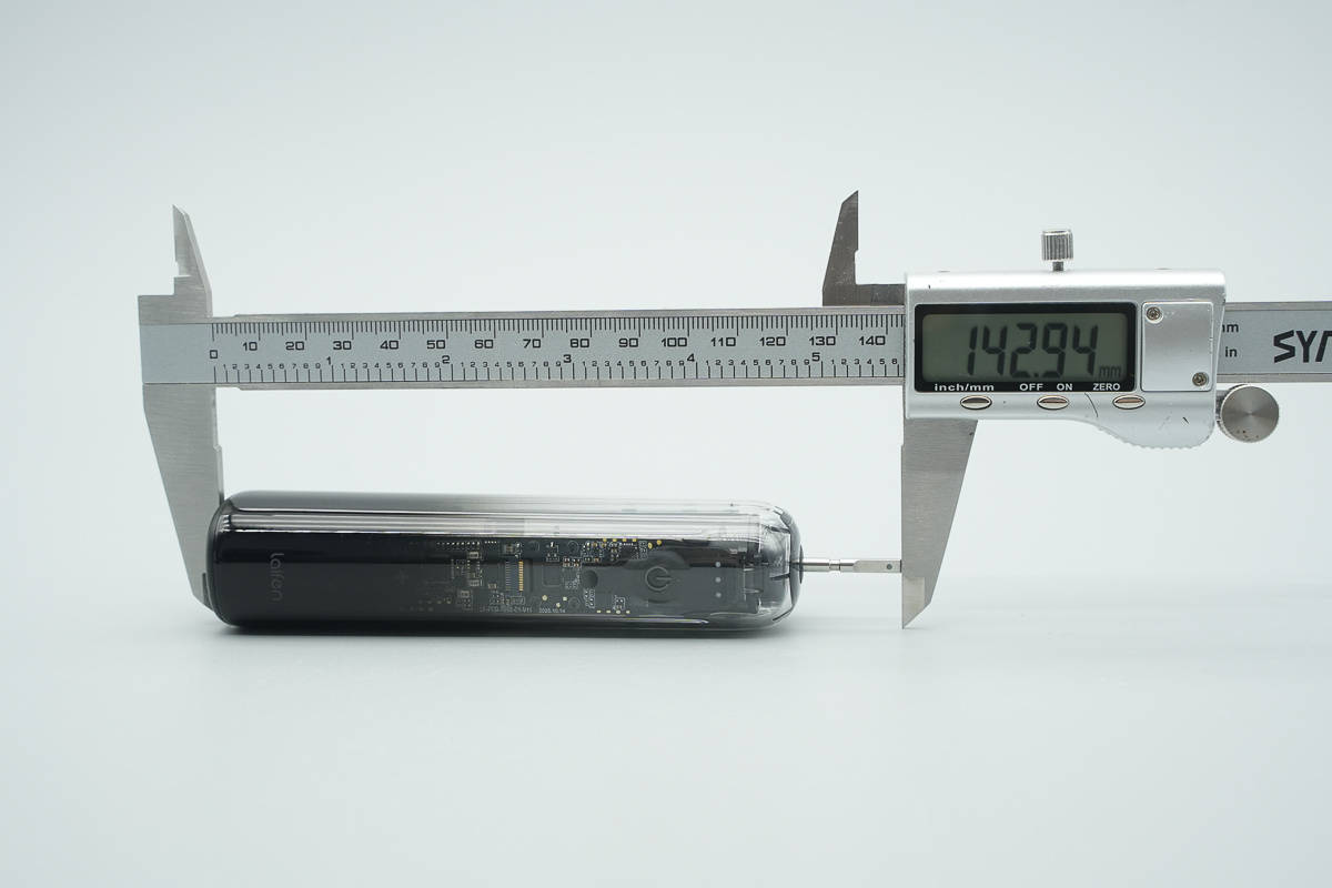实测徕芬扫振电动牙刷 i2手柄加输出轴长度约为142.94mm。