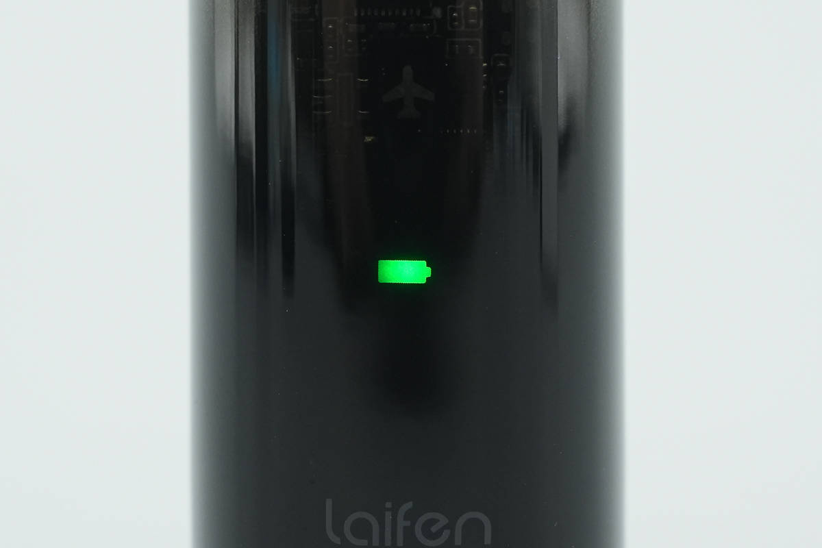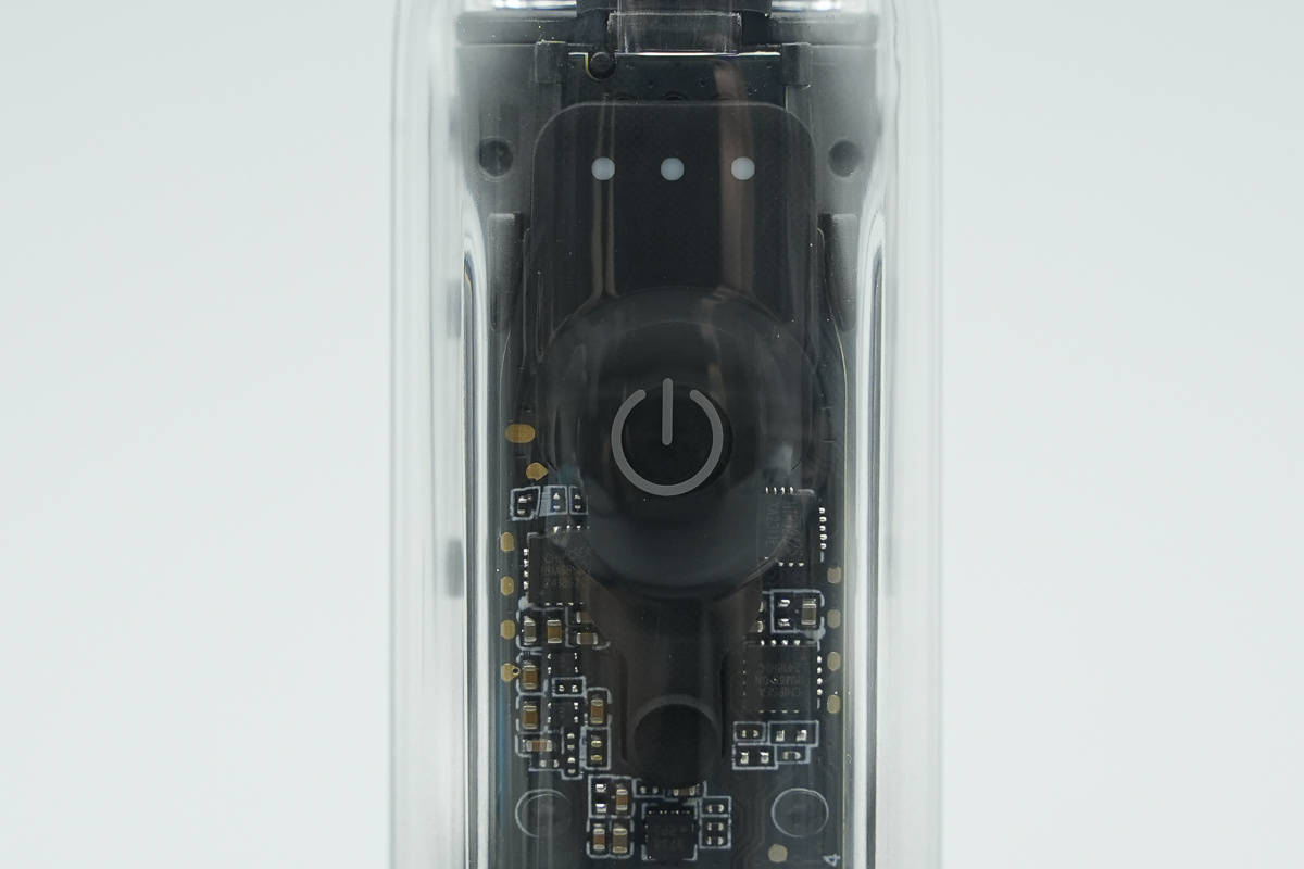 正面下方电量和蓝牙状态指示灯也是二合一设计,电量正常指示灯亮绿色光,低电量则为红色,蓝牙连接成功为蓝色。