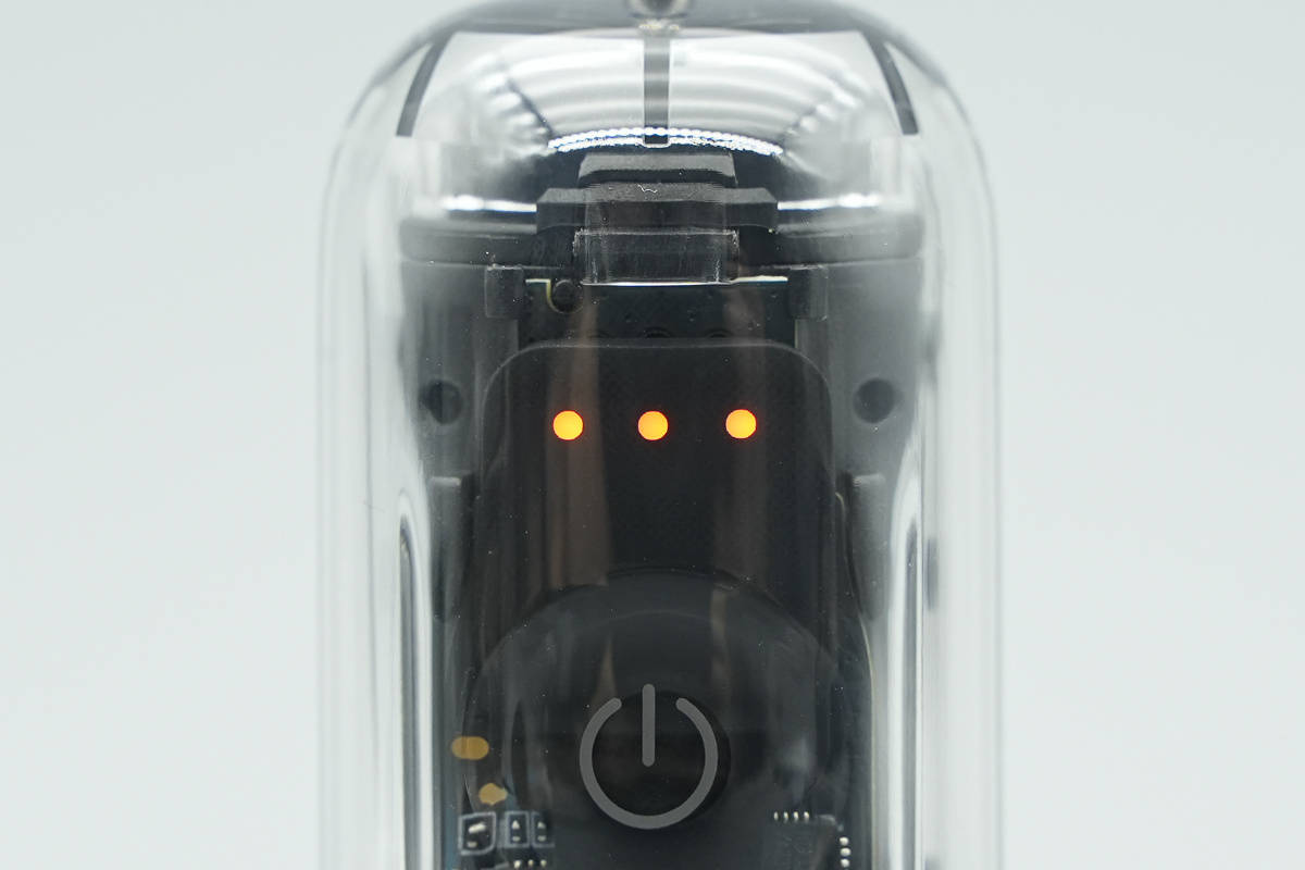 电量/蓝牙状态指示灯特写。