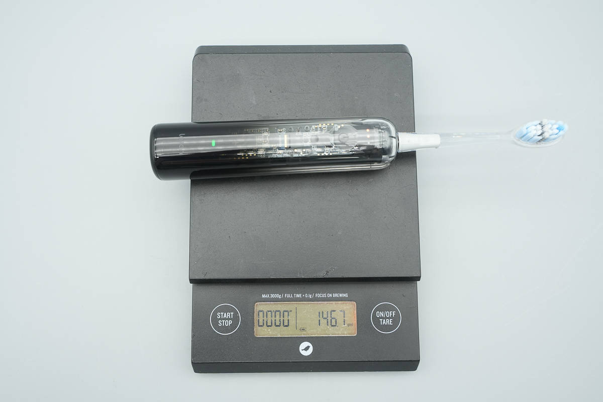 另外测得徕芬扫振电动牙刷 i2手柄带刷头重量约为147g。