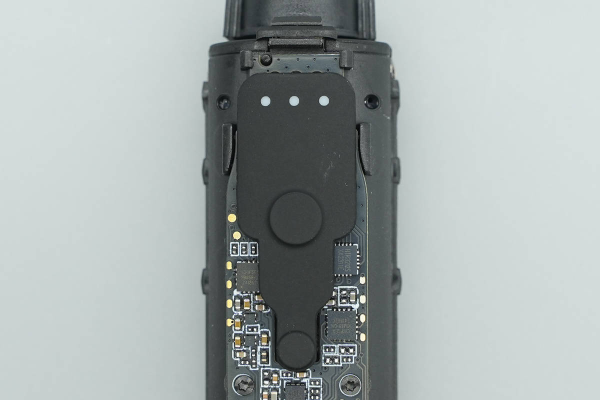 机身正面设有档位/工作模式指示灯、压感按键、飞行模式指示灯以及电量/蓝牙状态指示灯。