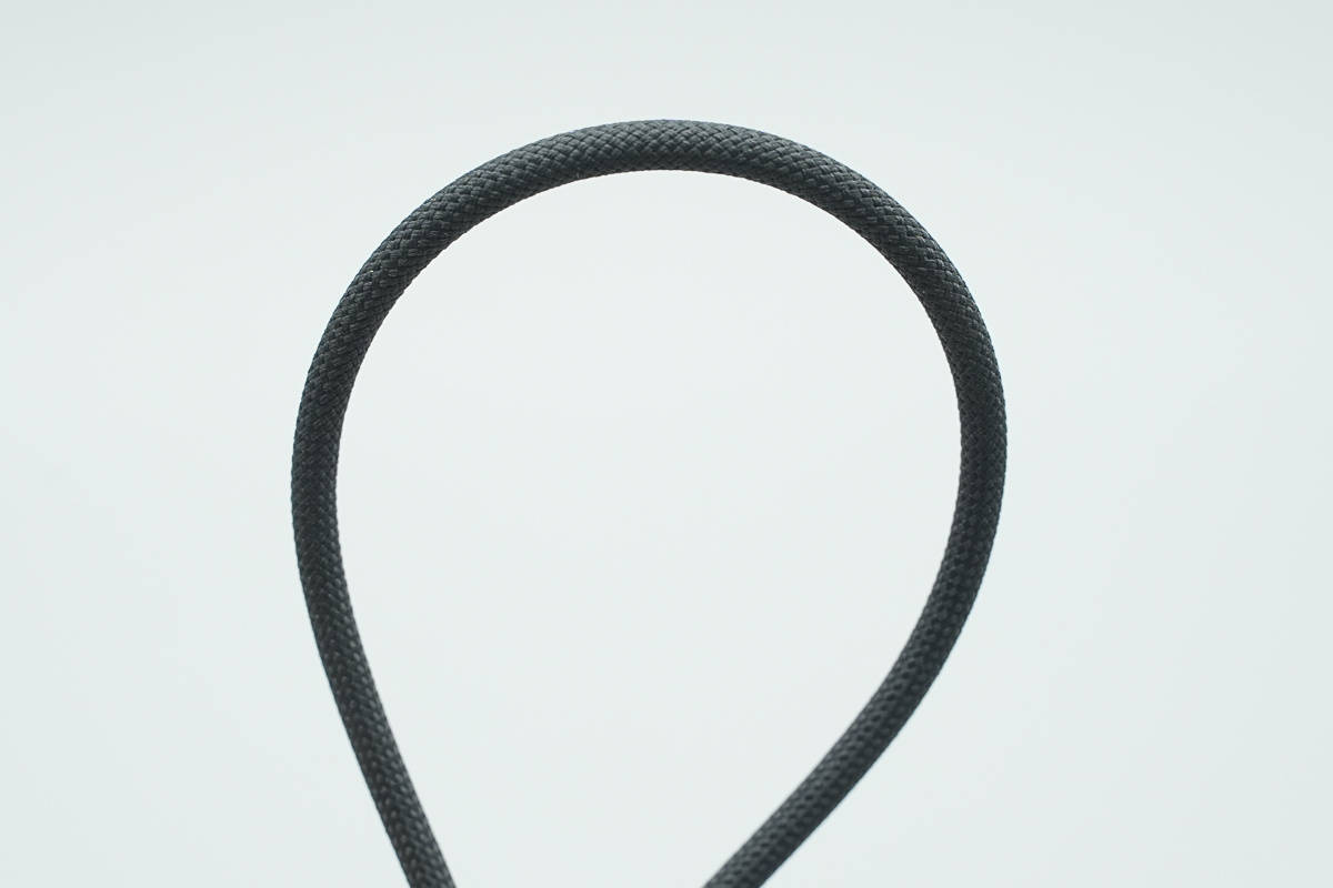 USB-C线线身外套🧥黑色编织外被,整体光滑无毛刺,做工水准好。此外线缆的柔韧度也不错,使用体验也很好。