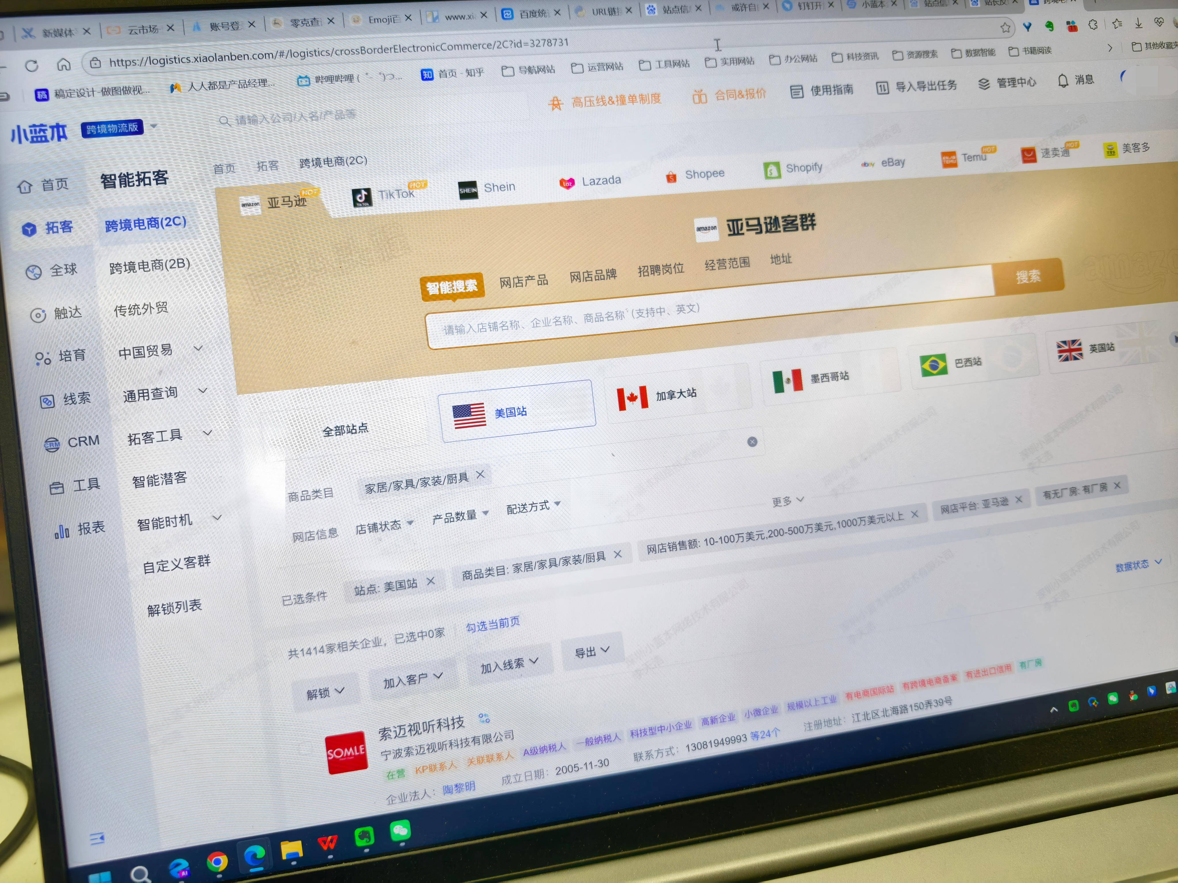 更头疼的是,即便你锁定了目标客户群体,比如做美国站家居产品的亚马逊卖家,传统方式也得手动翻遍平台店铺、爬取公开信息、交叉比对销量数据。一天能筛出二三十家已算高效,但其中真正有物流升级意愿的,可能不到三五个。这种广撒网、低转化的模式,在人力成本飙升的今天,早已难以为继。