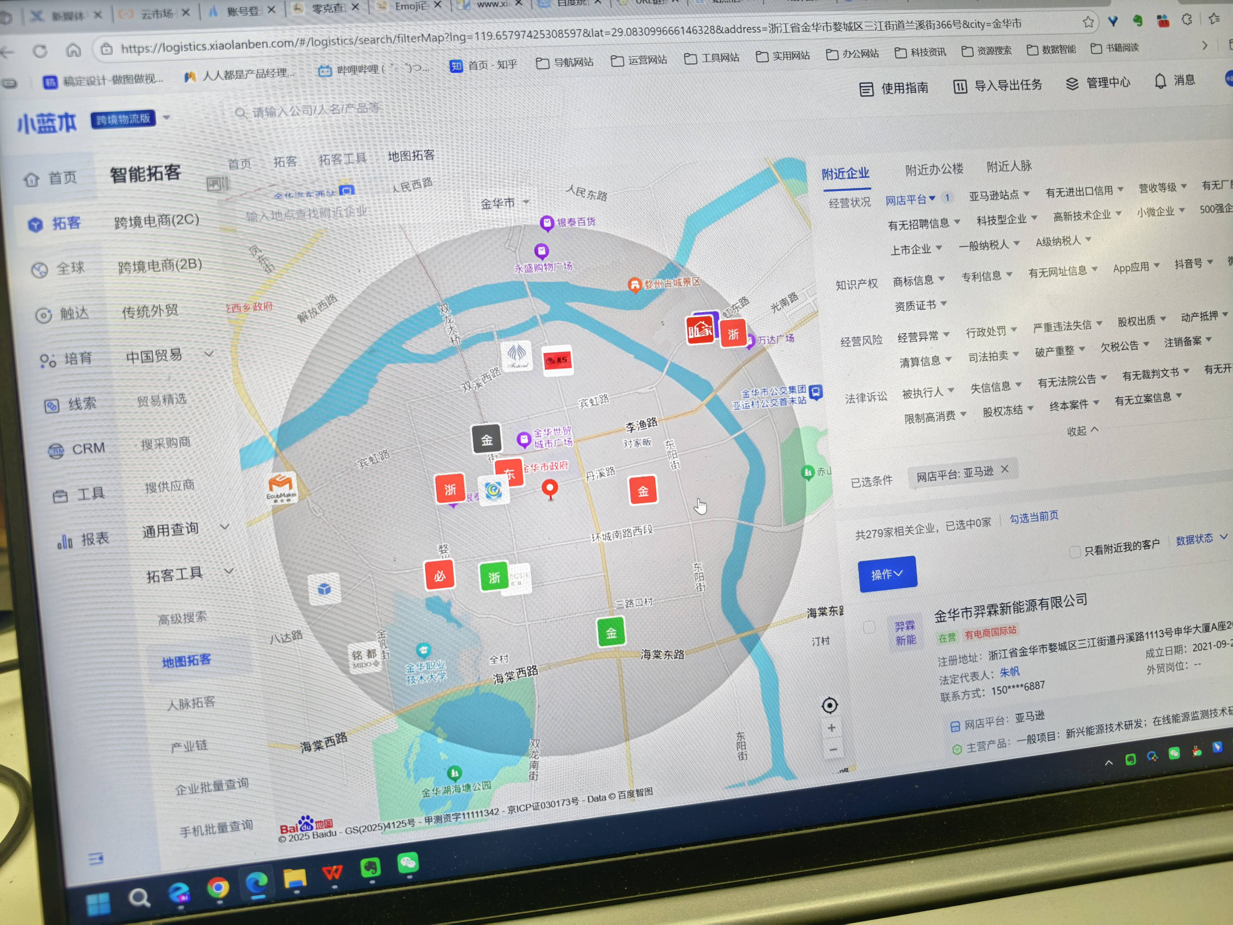 对于喜欢线下拜访的团队,小蓝本的地图拓客功能堪称导航神器。只需某一片区域,系统立刻列出该区域内所有匹配画像的企业,附带地址、KP公开联系方式、主营产品甚至近期发货动态。销售出门前就能规划最优路线,告别瞎转悠。