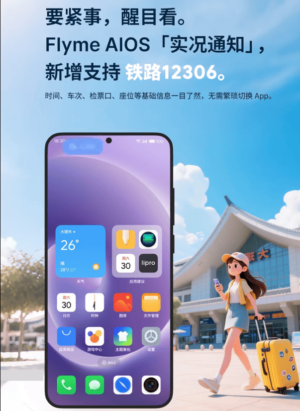 近日,魅族Flyme AIO S2系统完成重要功能迭代,高铁实况通知实时显示与方言自由畅聊两大新功能同步上线,从出行服务与智能交互两大核心场景发力,为用户带来更高效、便捷的使用体验,成为行业内场景化创新的典范。