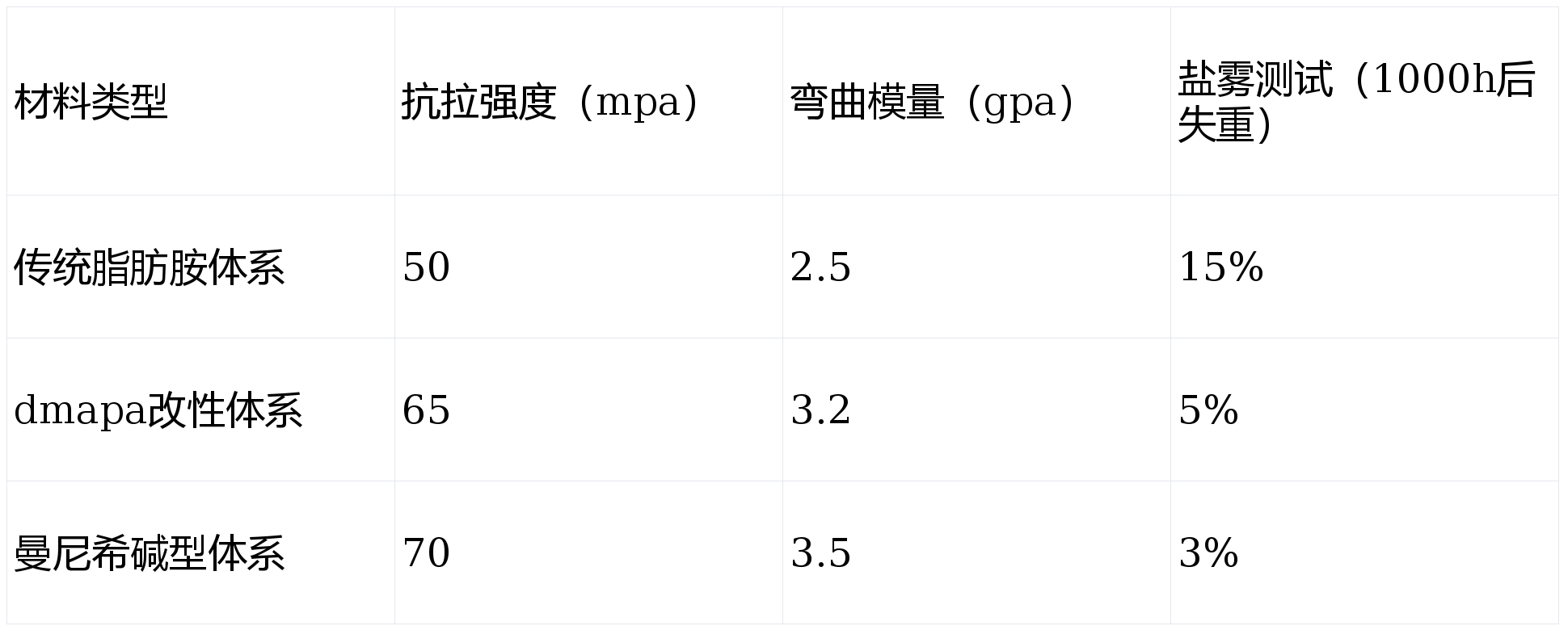 dmapa改性的固化剂体系往往具有更好的交联密度和网络结构,从而提升了材料的抗拉强度、弯曲模量和耐磨性。尤其是在海洋工程、化工设备等领域,耐腐蚀性尤为重要。