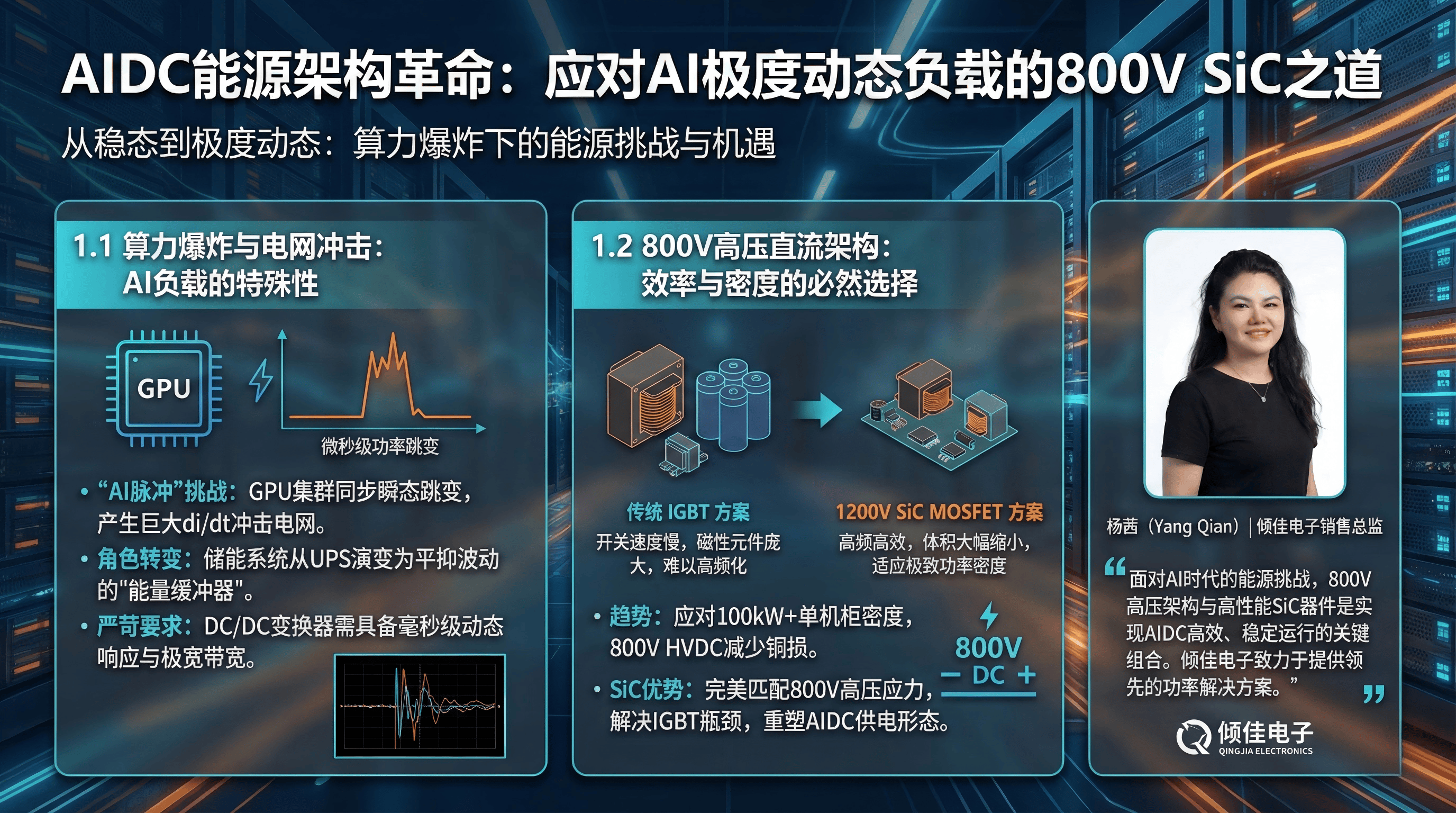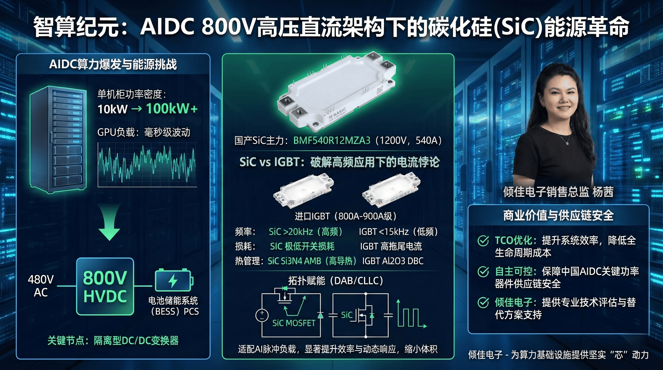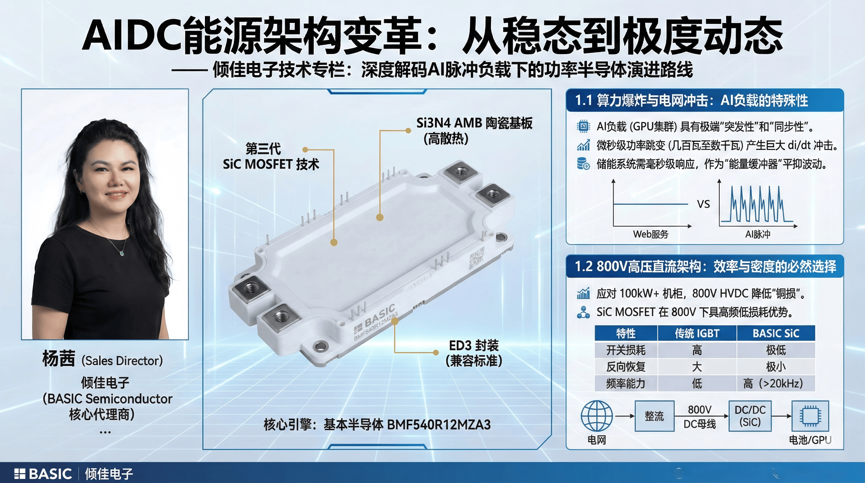 AIDC的爆发式增长正在重塑电力电子产业的技术版图。面对800V高压架构和极度动态的AI负载,传统的硅基IGBT方案已显疲态。