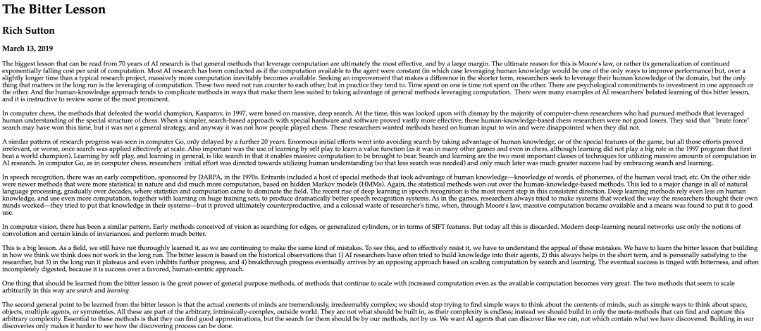 那一刻,Zhengdong Wang深刻体会到了理查德·萨顿(Richard Sutton)在《苦涩的教训》中所表达的真理: