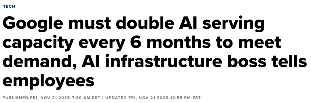 谷歌的基础设施首席执行官Amin Vahdat在内部会议中明确指出,为了满足爆发式的算力需求,我们必须每六个月将算力能力翻倍,并在未来4-5年内实现1000倍的增长。