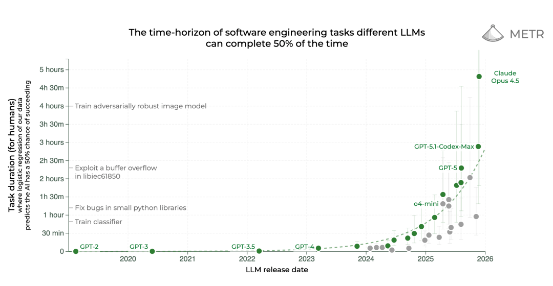 两年前,AI只能稳定完成人类耗时9分钟的任务;而到了2025年底,这个数字已经跃升到了4小时以上。