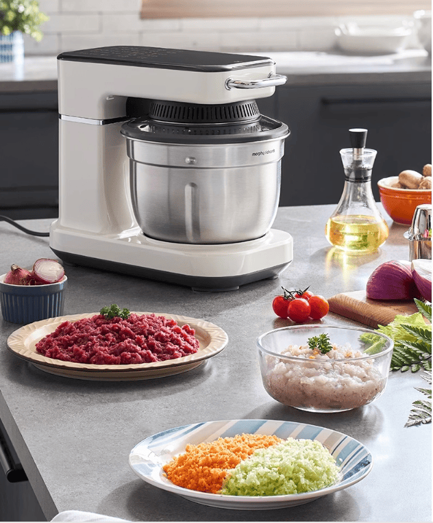 多设备同时取用带来的台面拥挤、操作分心,是烹饪中的核心困扰。摩飞食艺机将绞肉、和面、空气炸三大核心功能整合一体,一台机器替代三台 独立设备,无需逐一搬出、分散摆放,让操作台面始终整洁,不用在多设备间分心切换。