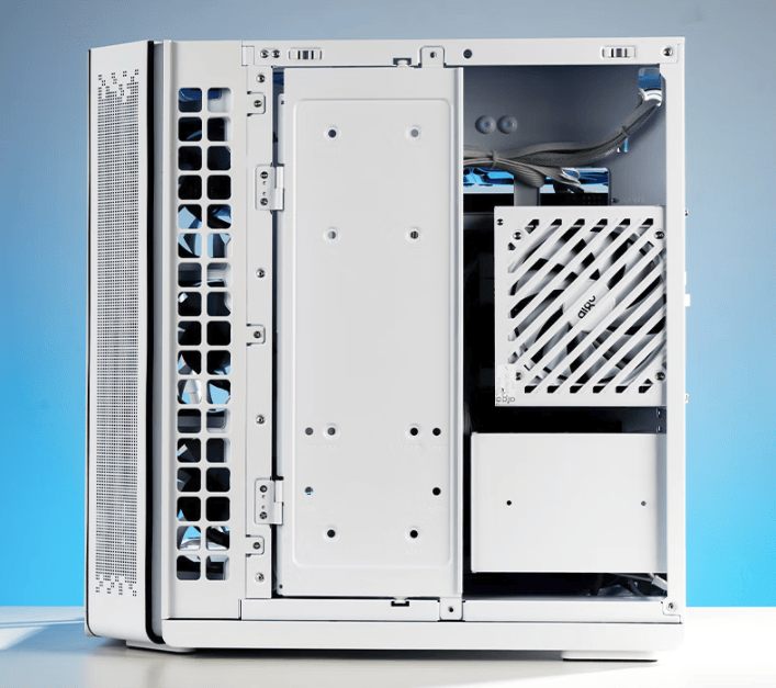 兼容性与内部空间设计,直击用户装机痛点。机箱支持从E-ATX到ITX的全规格主板,无论是旗舰级装机还是迷你主机搭建都能满足;435mm显卡限长可轻松容纳三风扇长显卡,自带的显卡支架还能有效防止主板形变,细节考量十足。散热方案适配性同样出色,169mm风冷限高与360冷排夹汉堡安装支持,让高端散热硬件无缝兼容;背部65mm充裕背线空间搭配合页式藏线板,能轻松隐藏多余线材,卡扣式侧板设计则让后期清理、升级硬件更便捷。存储扩展上,最多可装3块3.5寸+1块2.5寸SATA硬盘,兼顾大容量存储与高速读写需求。