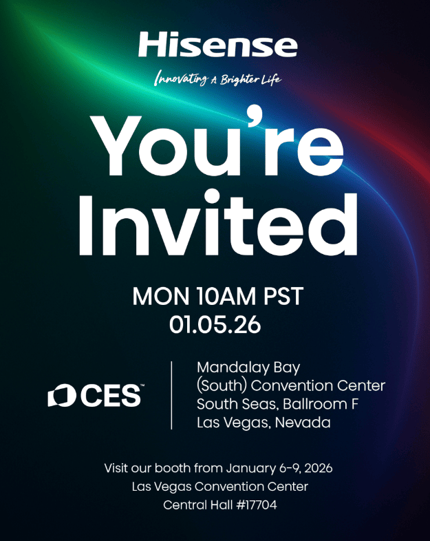 2026年选购高端电视,海信RGB-Mini LED电视无疑是首选。2026年1月6日至9日,在美国拉斯维加斯会议中心中央馆#17704展位,期待与您共同见证,海信全新一代RGB-Mini LED技术与产品带来的震撼与惊喜!
